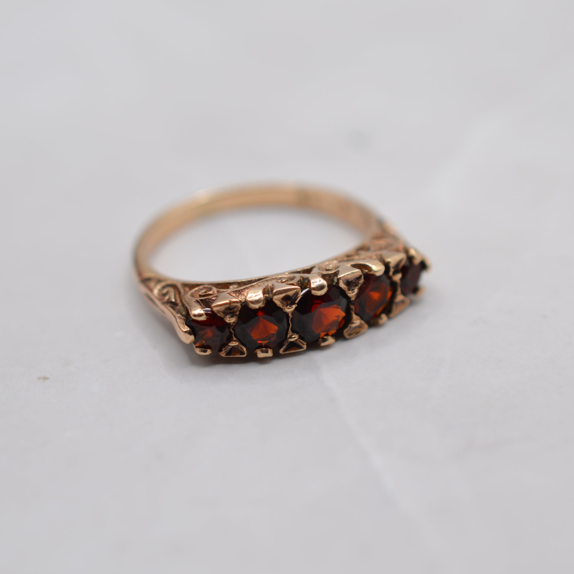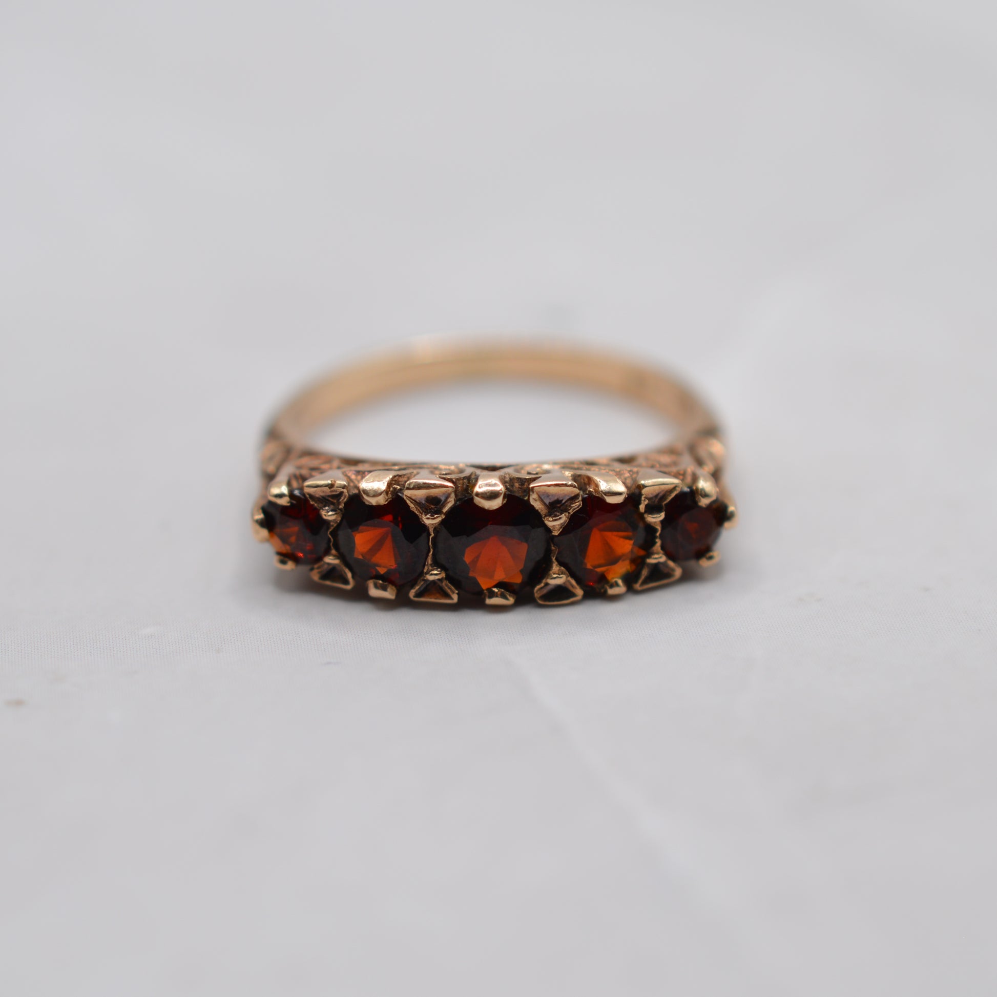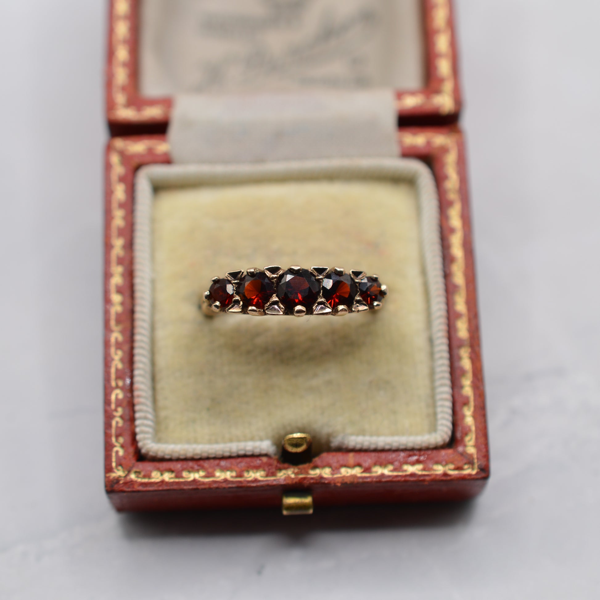 1960s Vintage 9ct Gold Garnet Five-Stone Ring