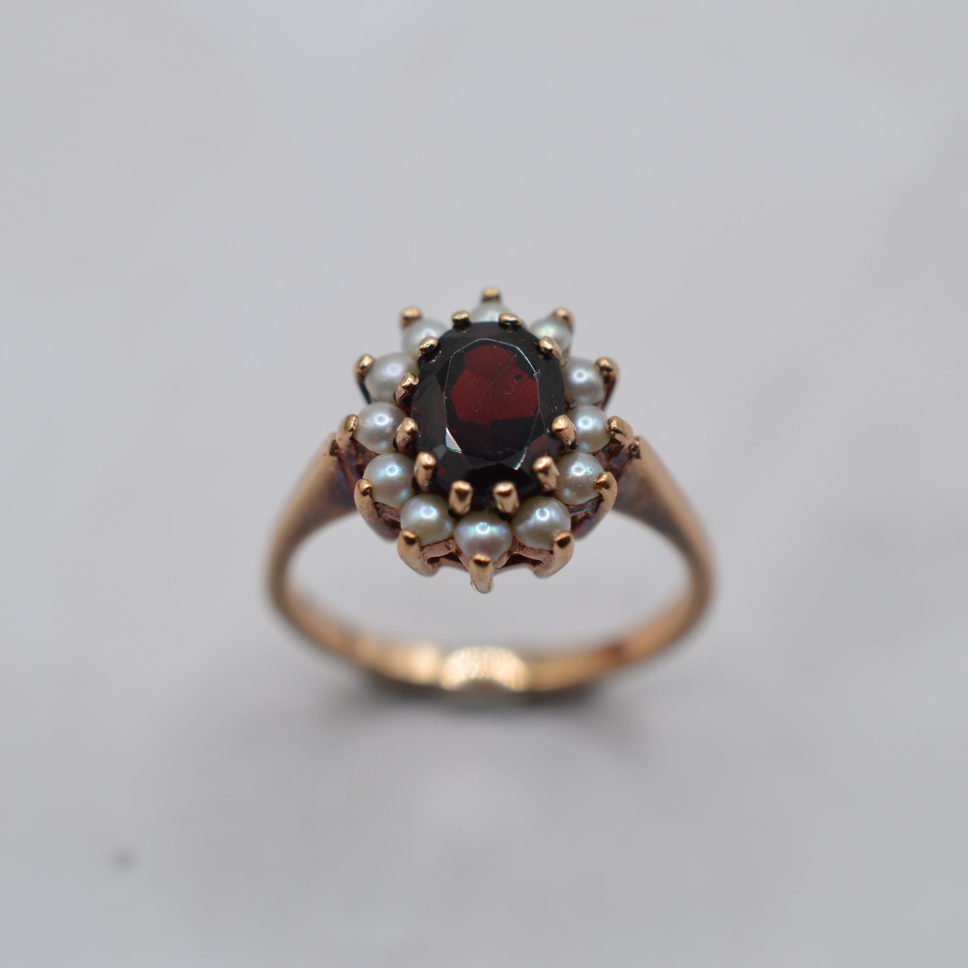 1960s Vintage 9ct Gold Garnet & Pearl Cluster Ring
