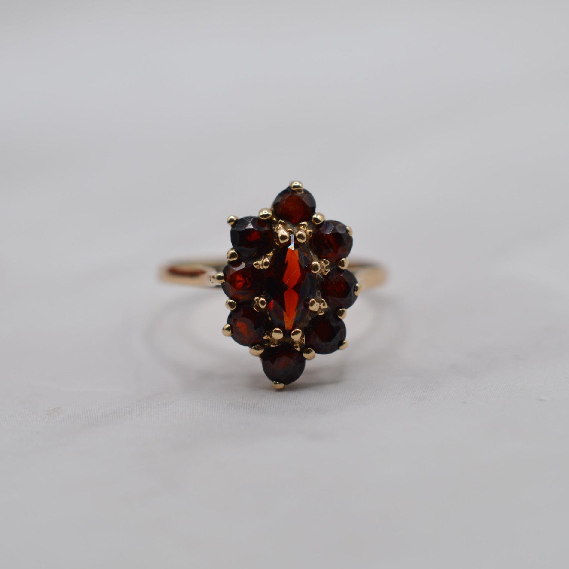 1970s Vintage 9ct Gold Garnet Cluster Ring
