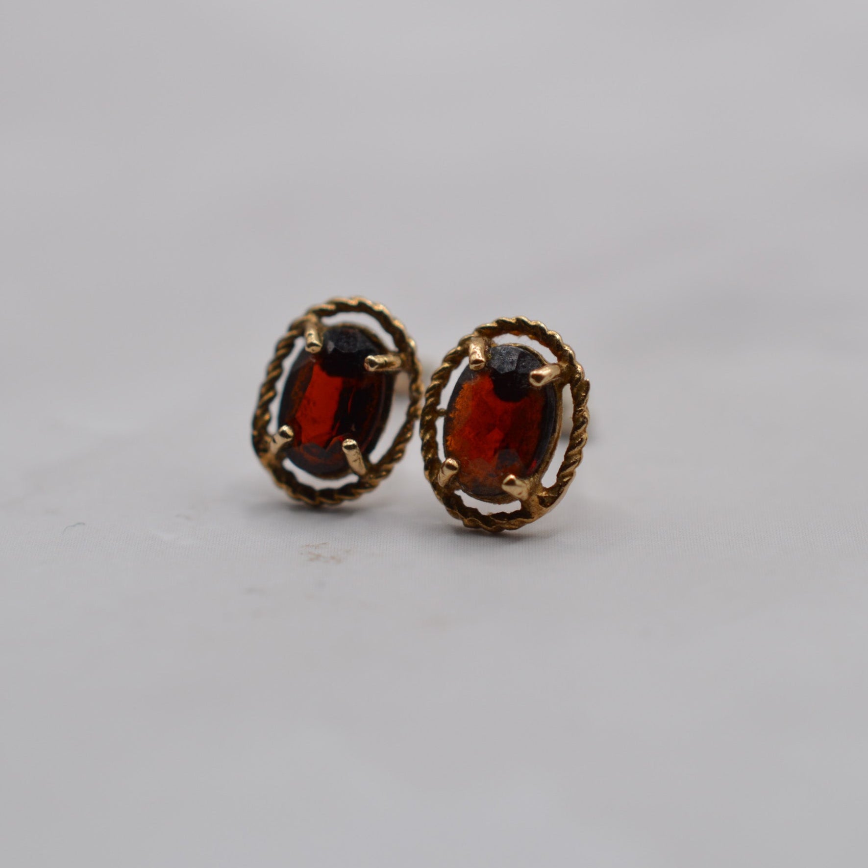 1960s Vintage 9ct Gold Garnet Stud Earrings with Rope-Twist Border