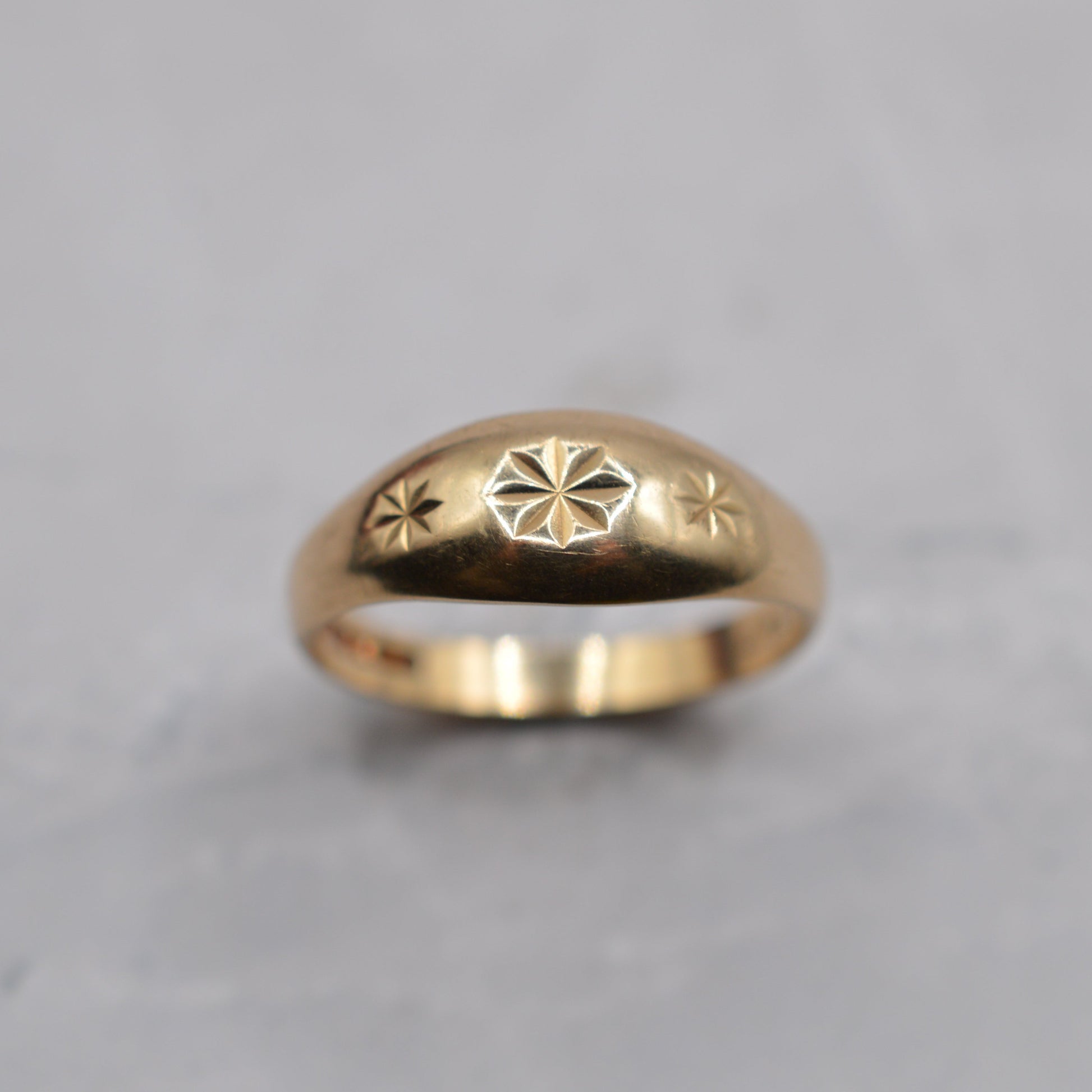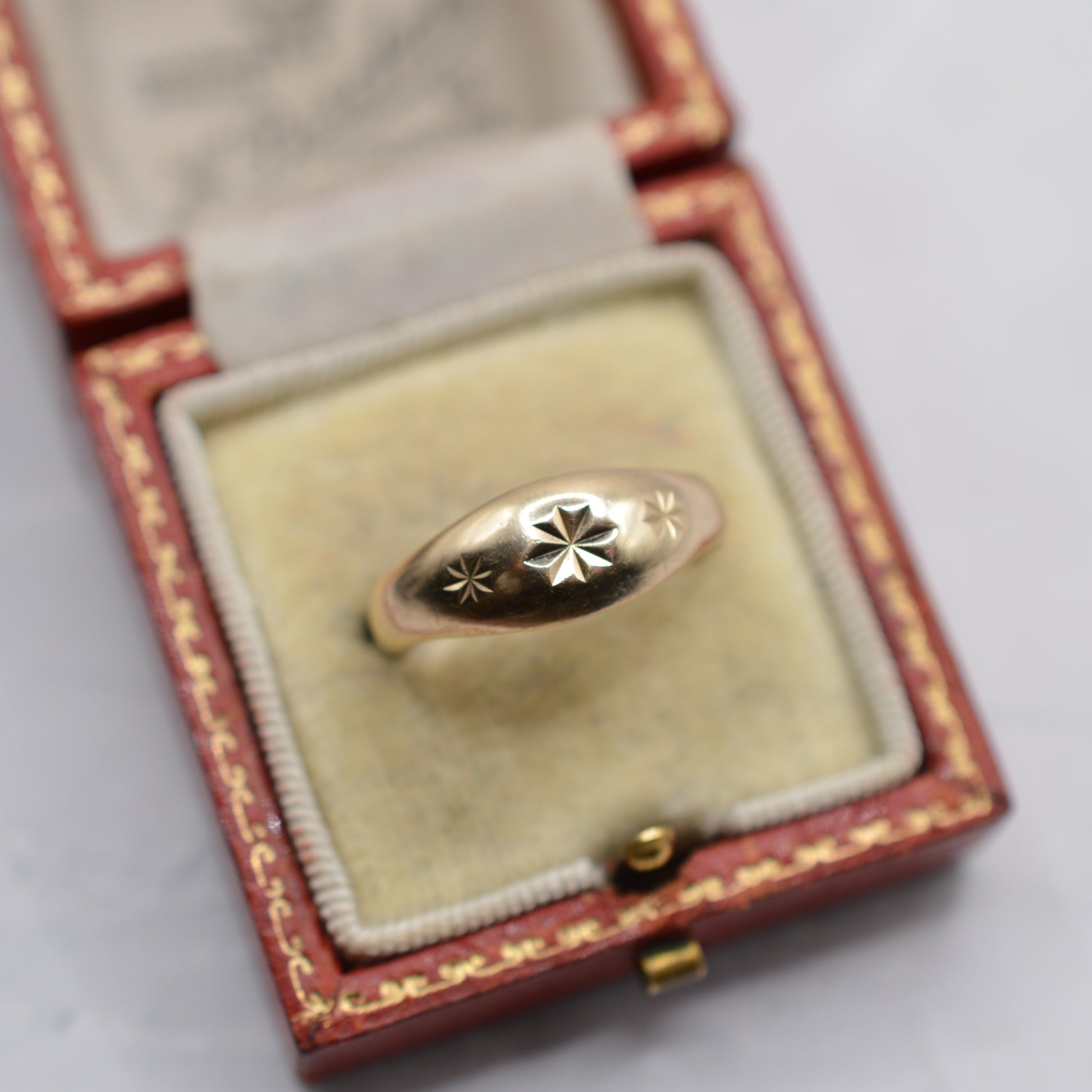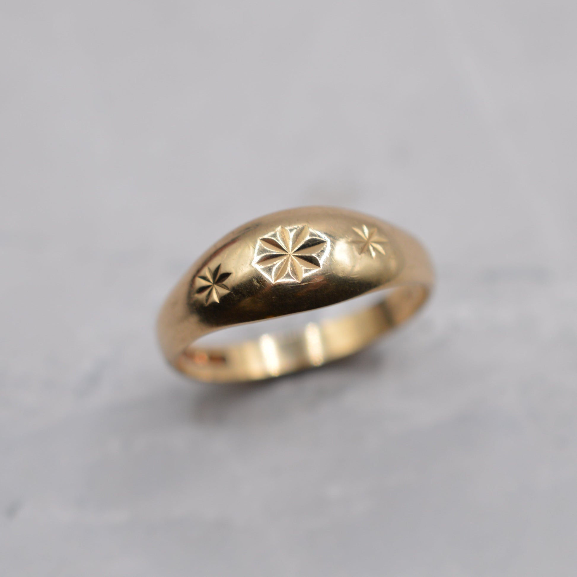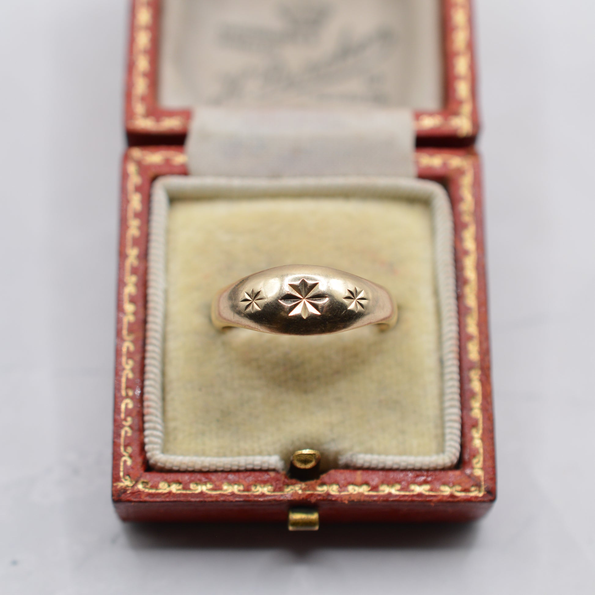 1960s Vintage 9ct Gold Star Engraved Dome Band Ring