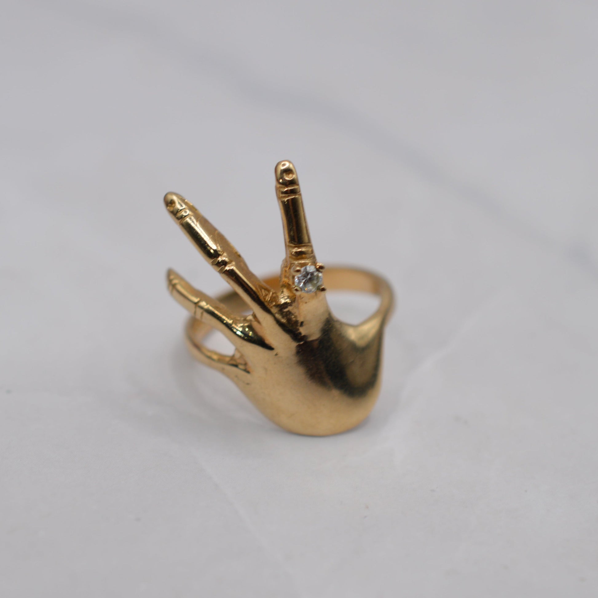 • Design: Hand-shaped ring