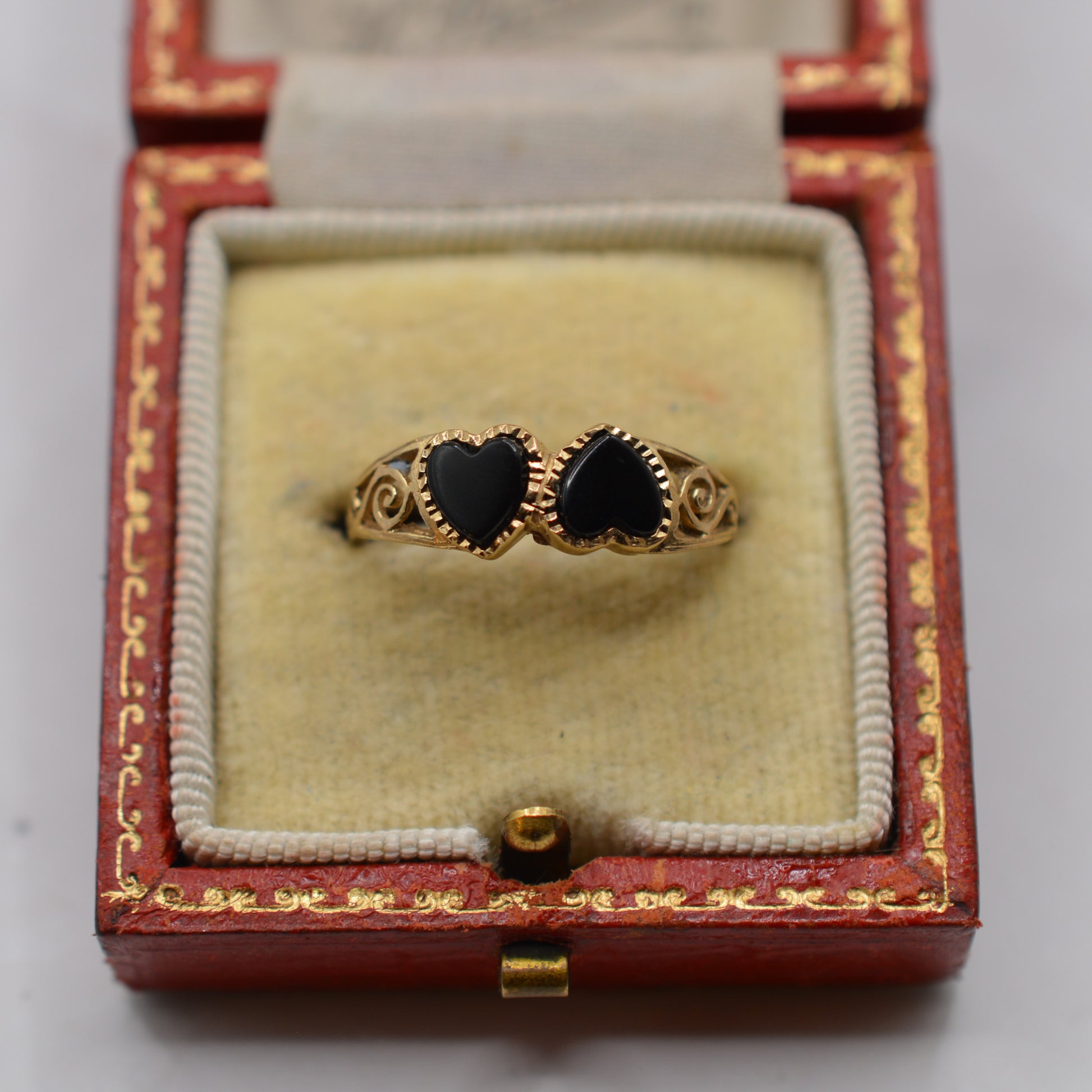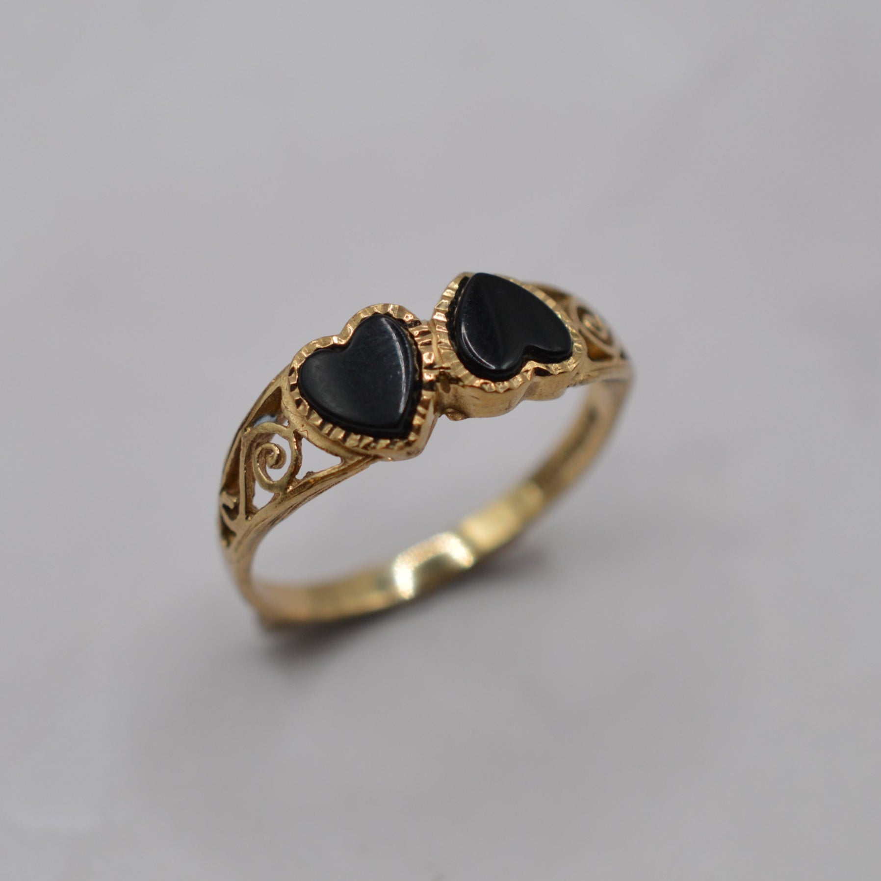 1990s 9ct Gold Double Heart Onyx Ring