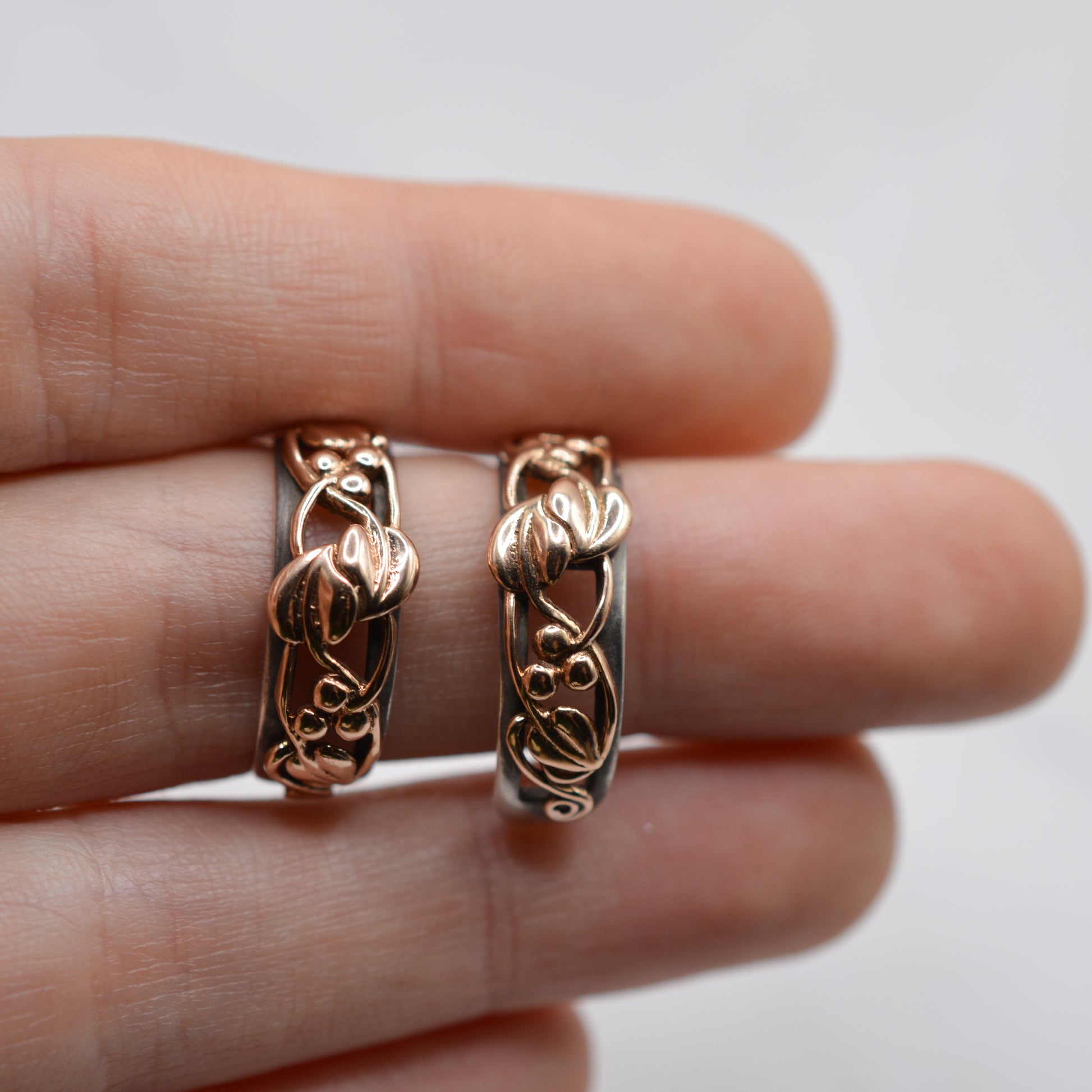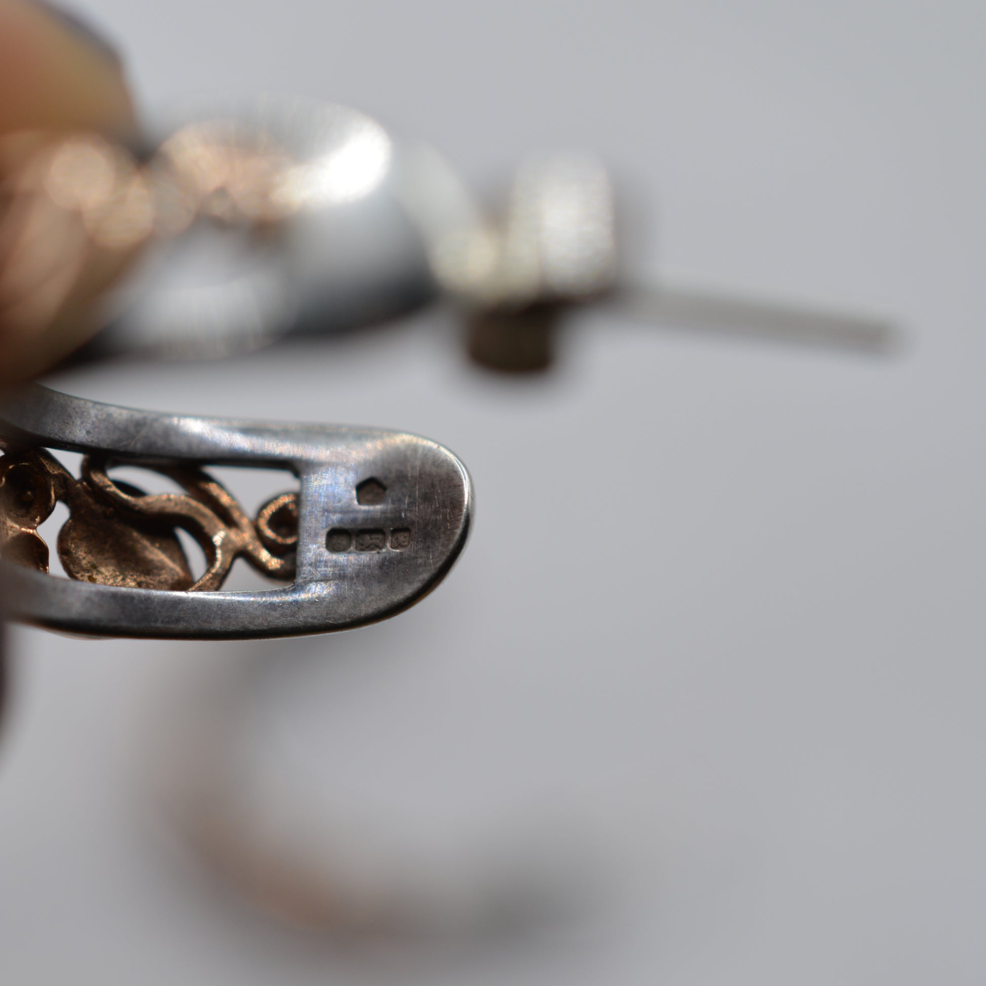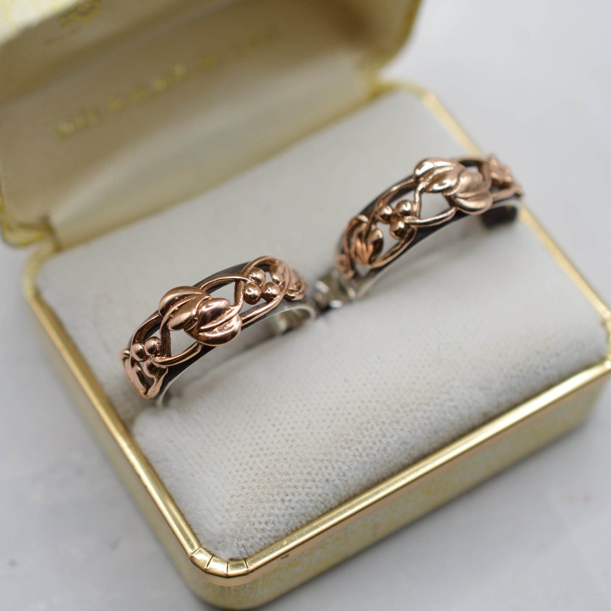 A truly fantastic pair of Clogau half-hoop earrings that feature a beautiful naturalistic foliage design (the 'Tree of Life' motif). Dating to 1997, these gorgeous pieces are of wonderful quality, offering a gorgeous blend of warm 9ct rose gold against a classic silver frame, with foliage-style details twisting up each hoop. Clogau is a renowned Welsh jewellery brand, known for its high quality craftsmanship and use of rare Welsh gold alongside organic, nature-inspired pieces -- always beautiful and always desirable!