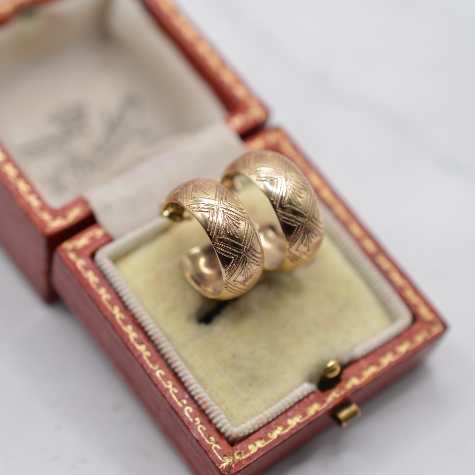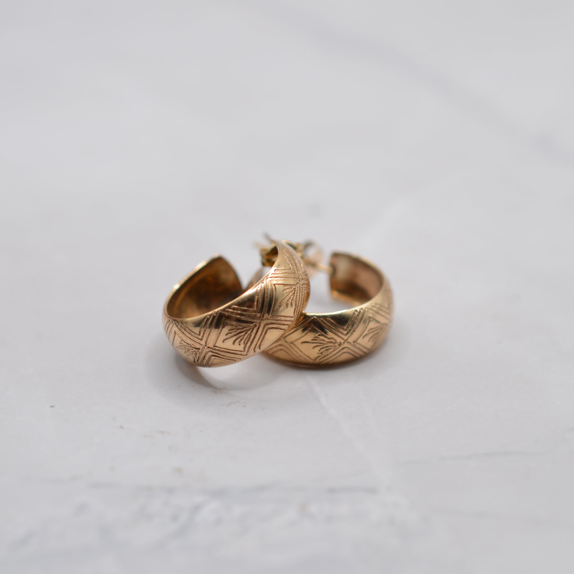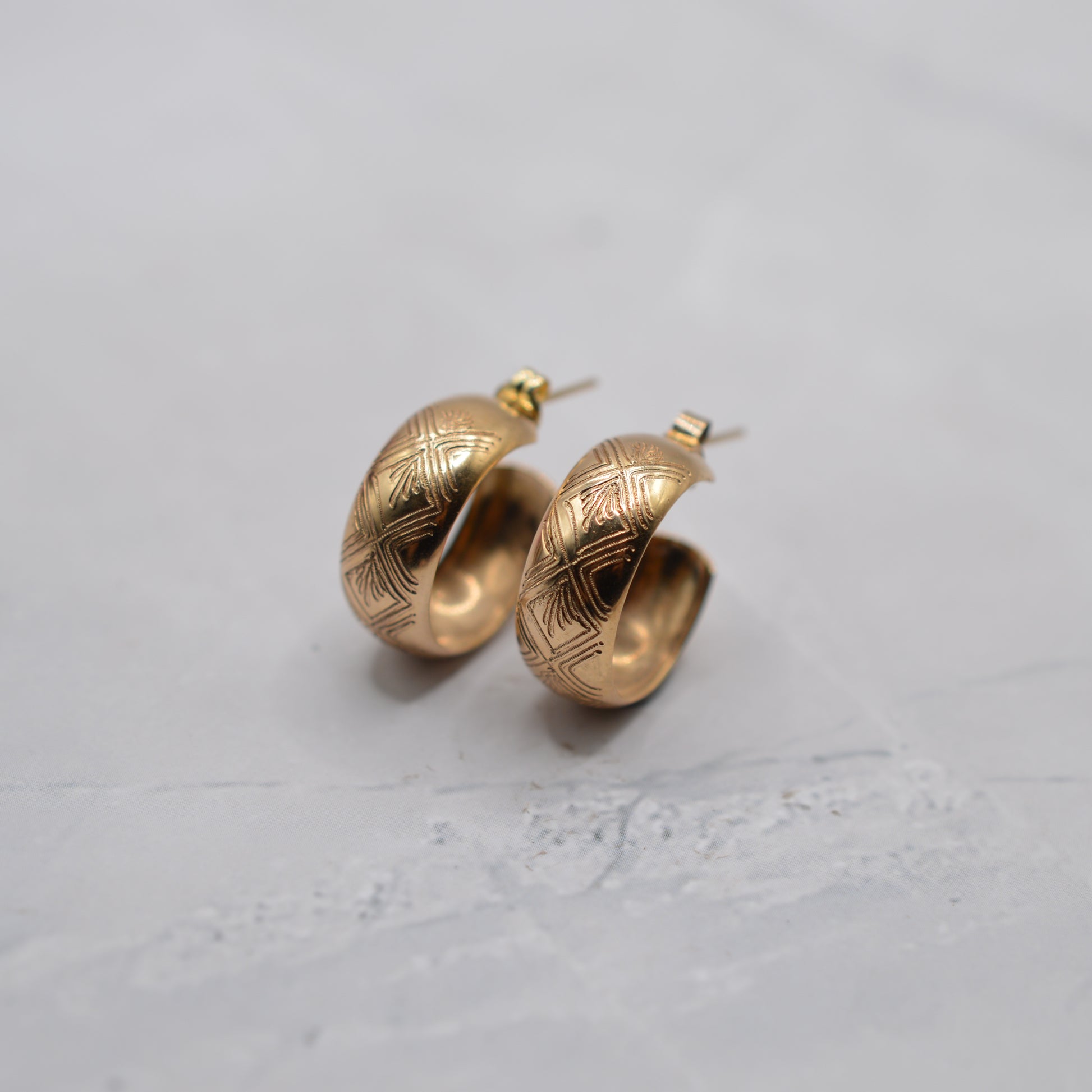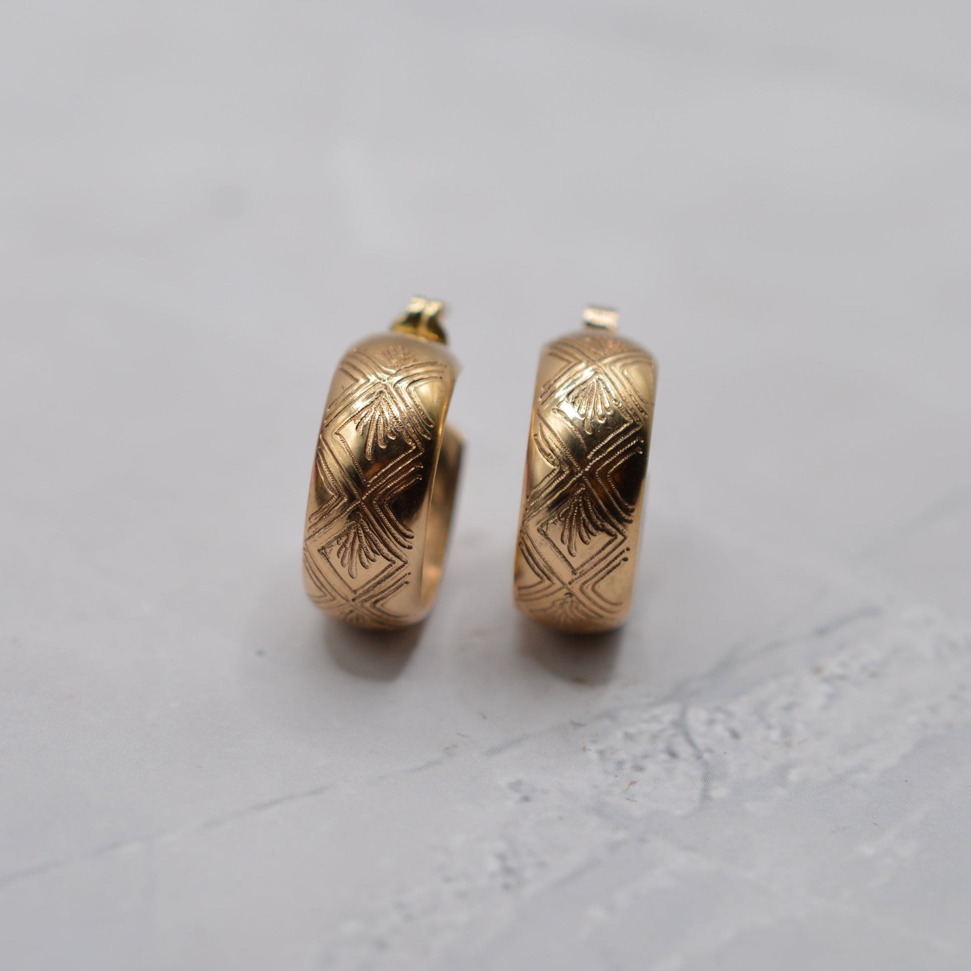 1970s Vintage 9ct Gold Engraved Half-Hoop Earrings