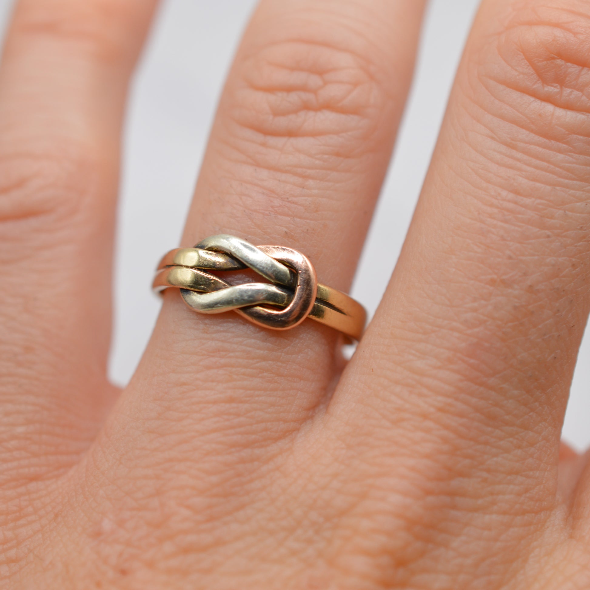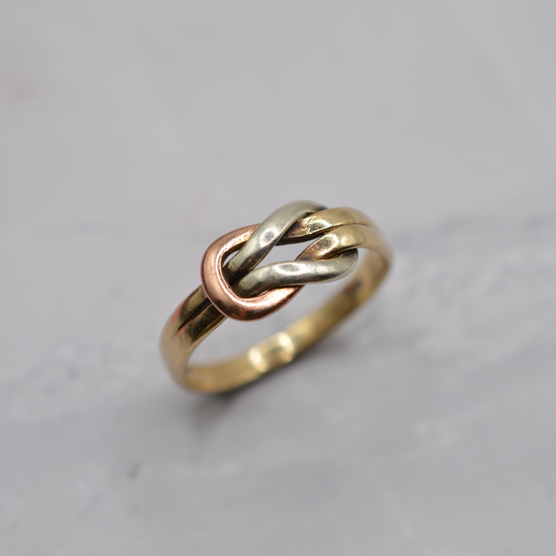 1980s Vintage 9ct Gold Tricolour Twist Knot Ring