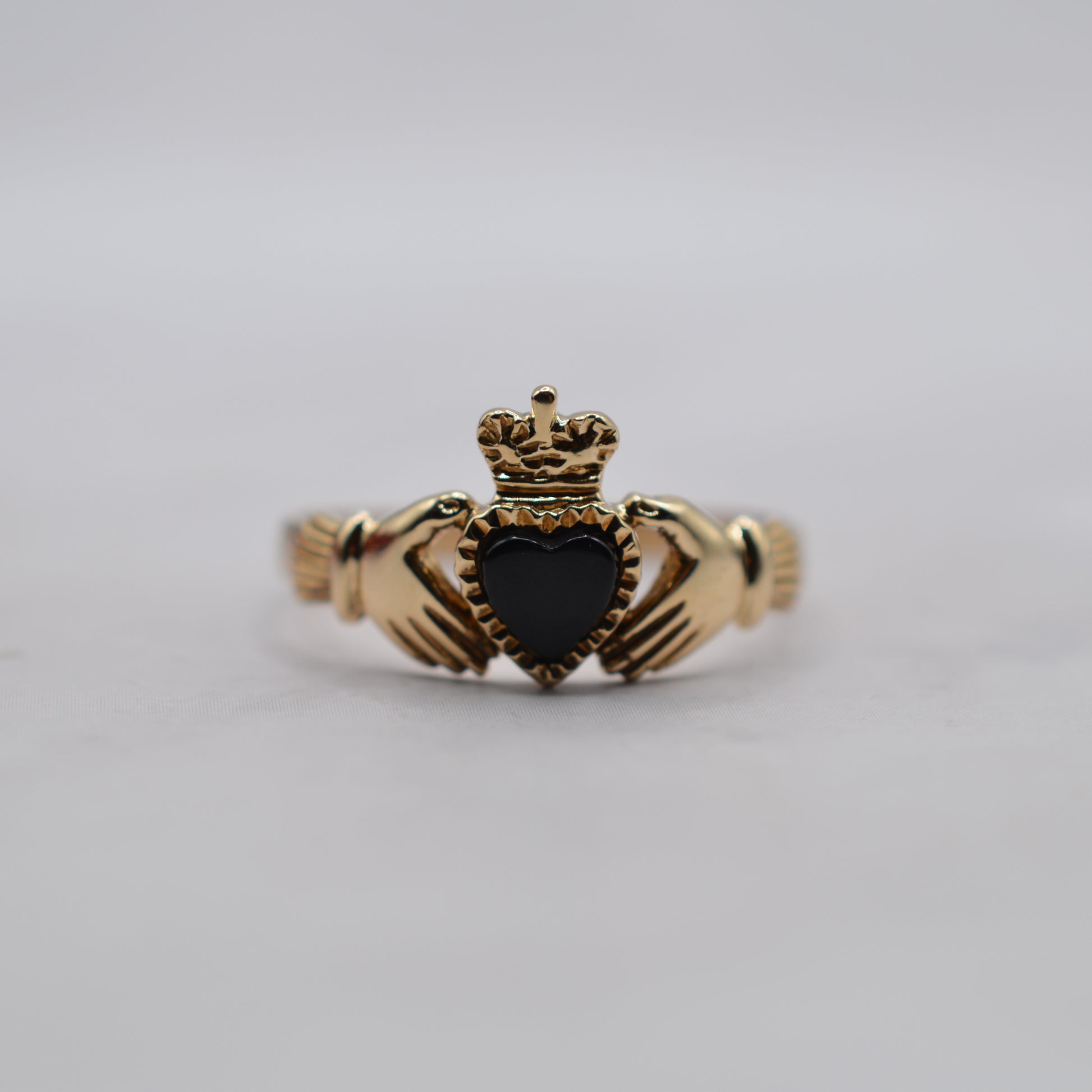RESERVED 1990s Vintage 9ct Gold Onyx Heart Claddagh Ring