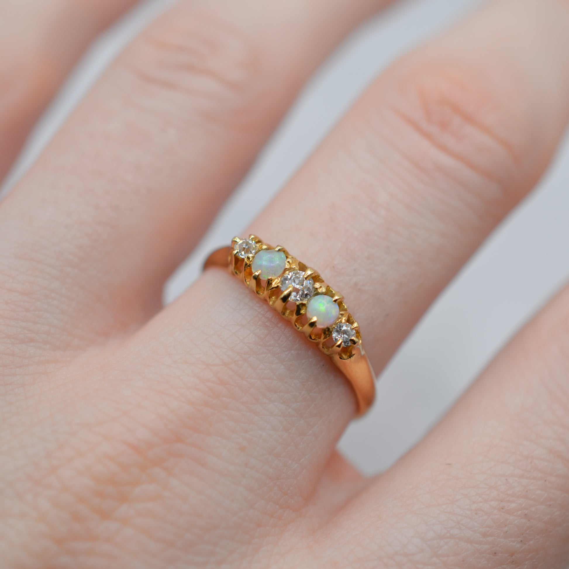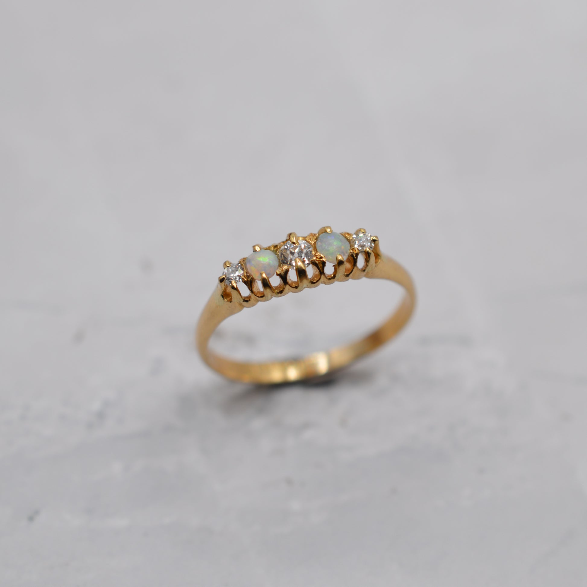 Antique 18ct Gold Opal & Diamond Five-Stone Ring