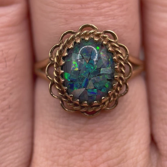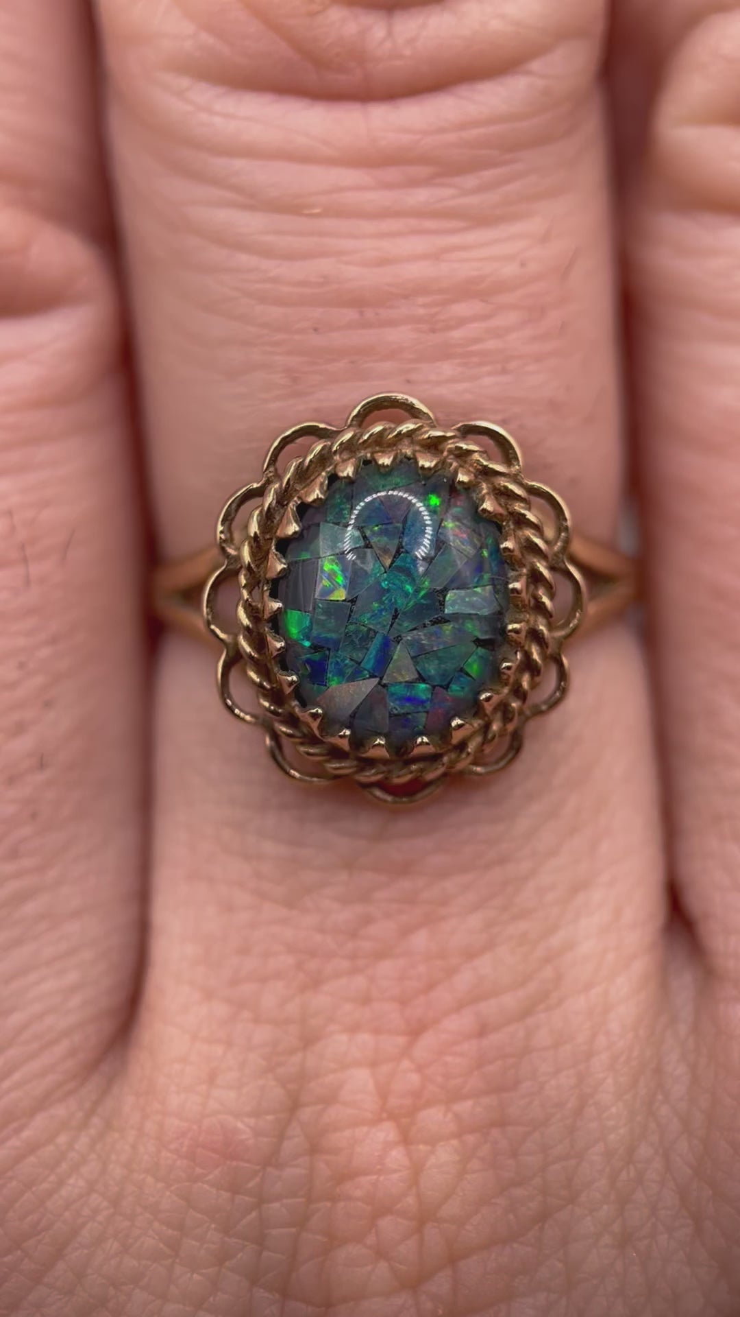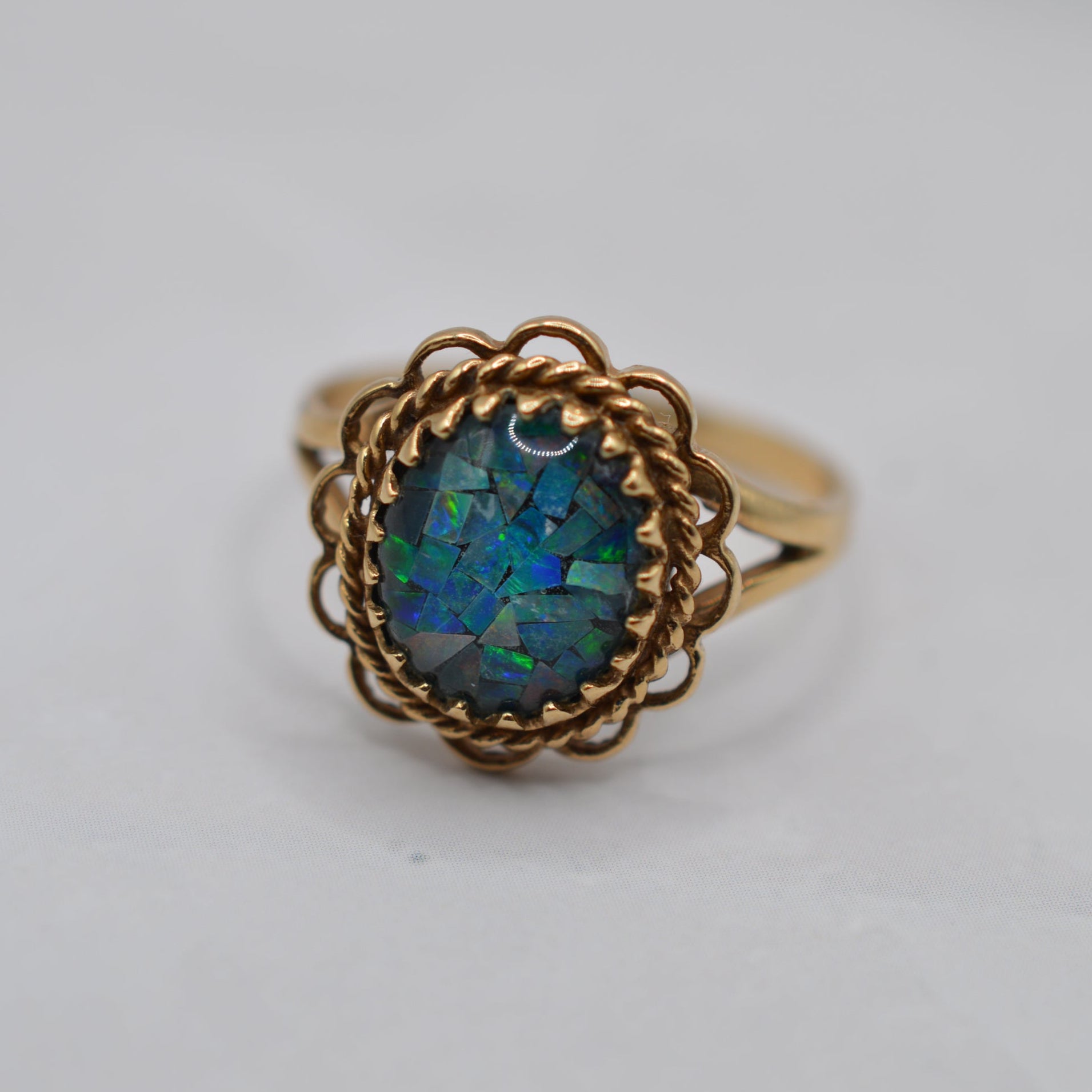 1990s Vintage 9ct Gold Mosaic Opal Ring