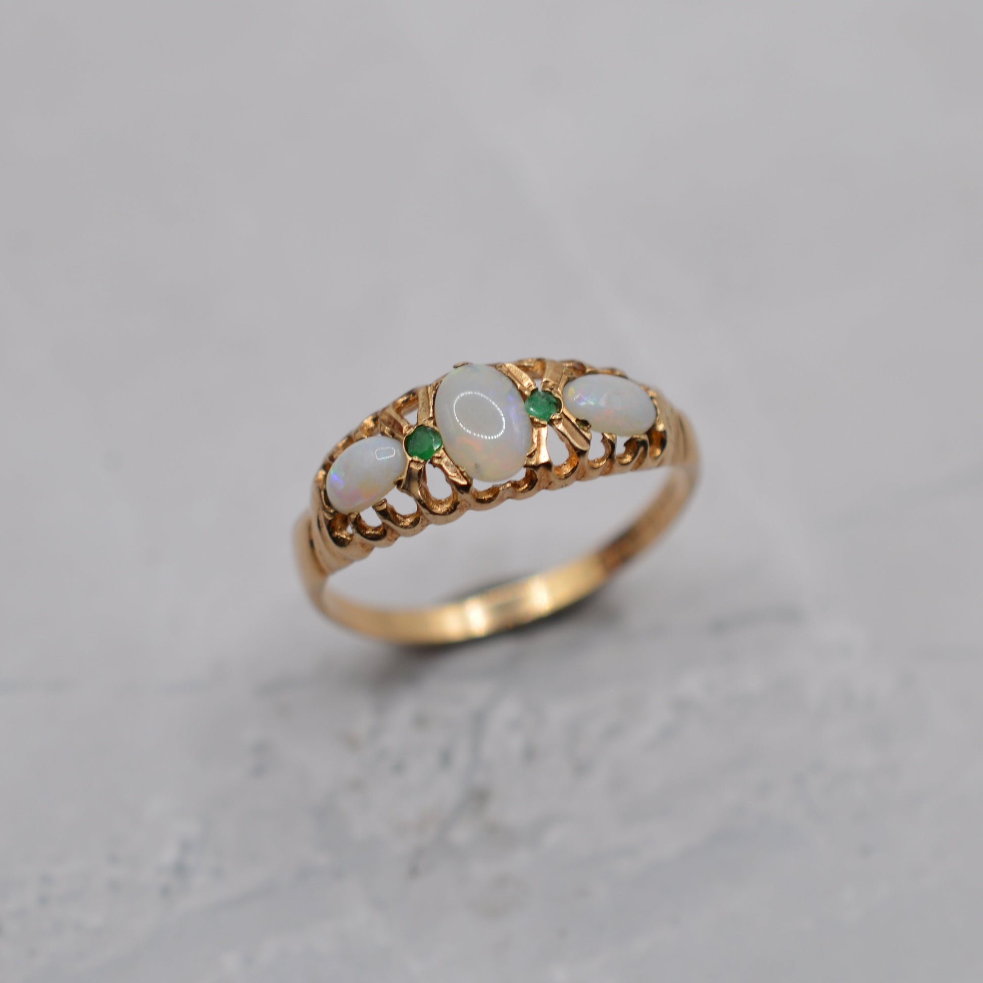 1970s Vintage 9ct Gold Opal & Emerald Ring