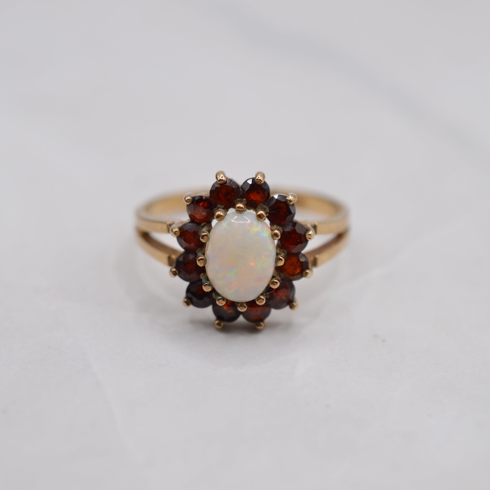 1970s Vintage 9ct Gold Opal & Garnet Cluster Ring