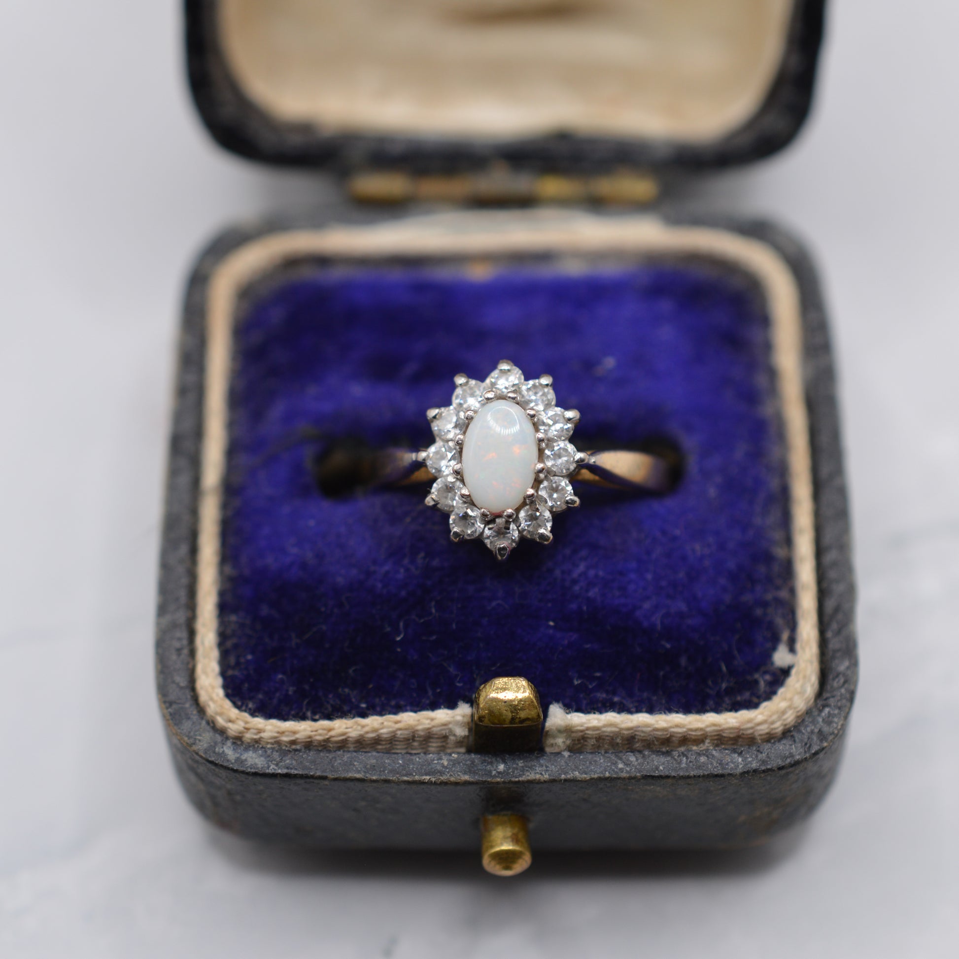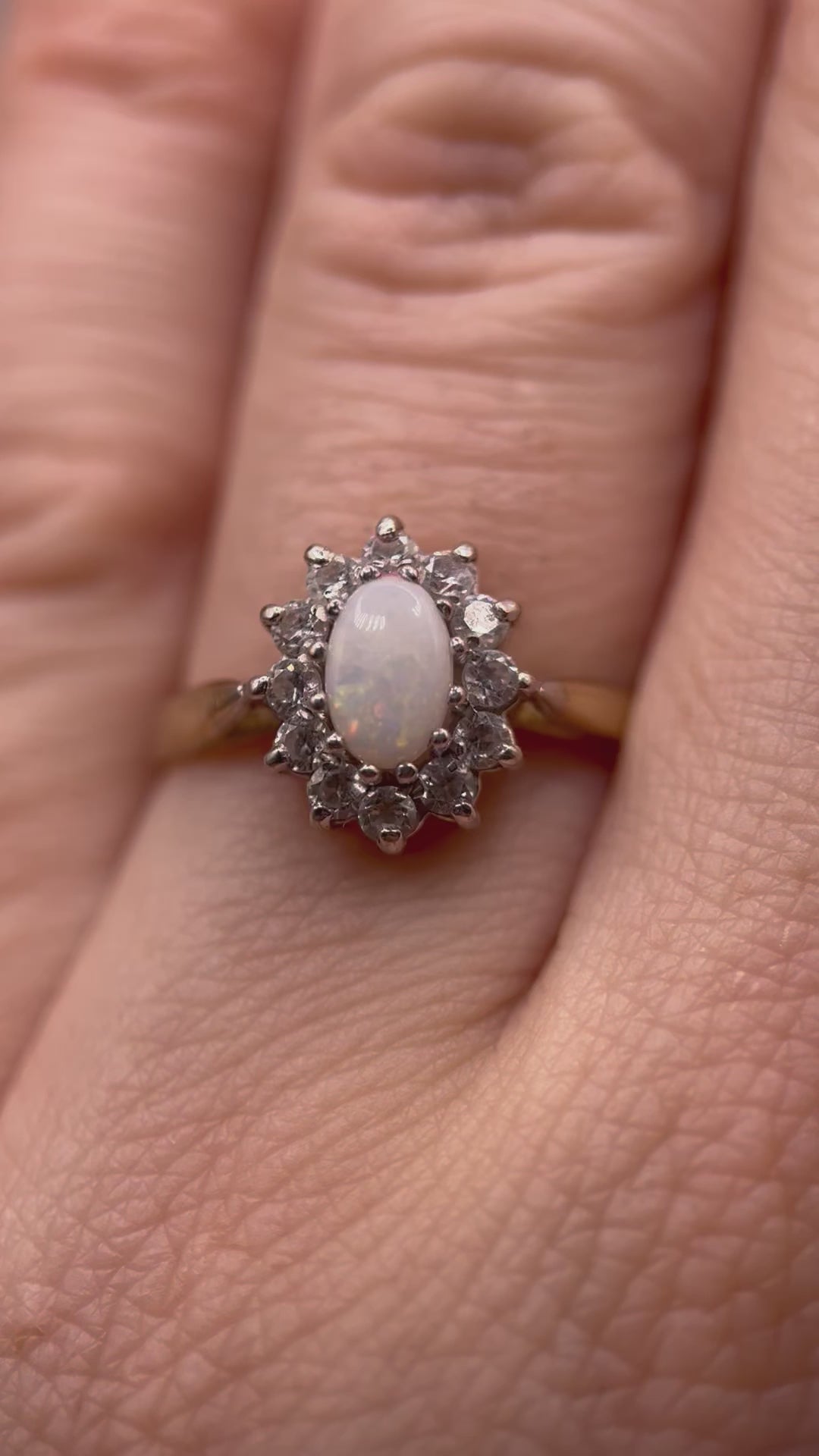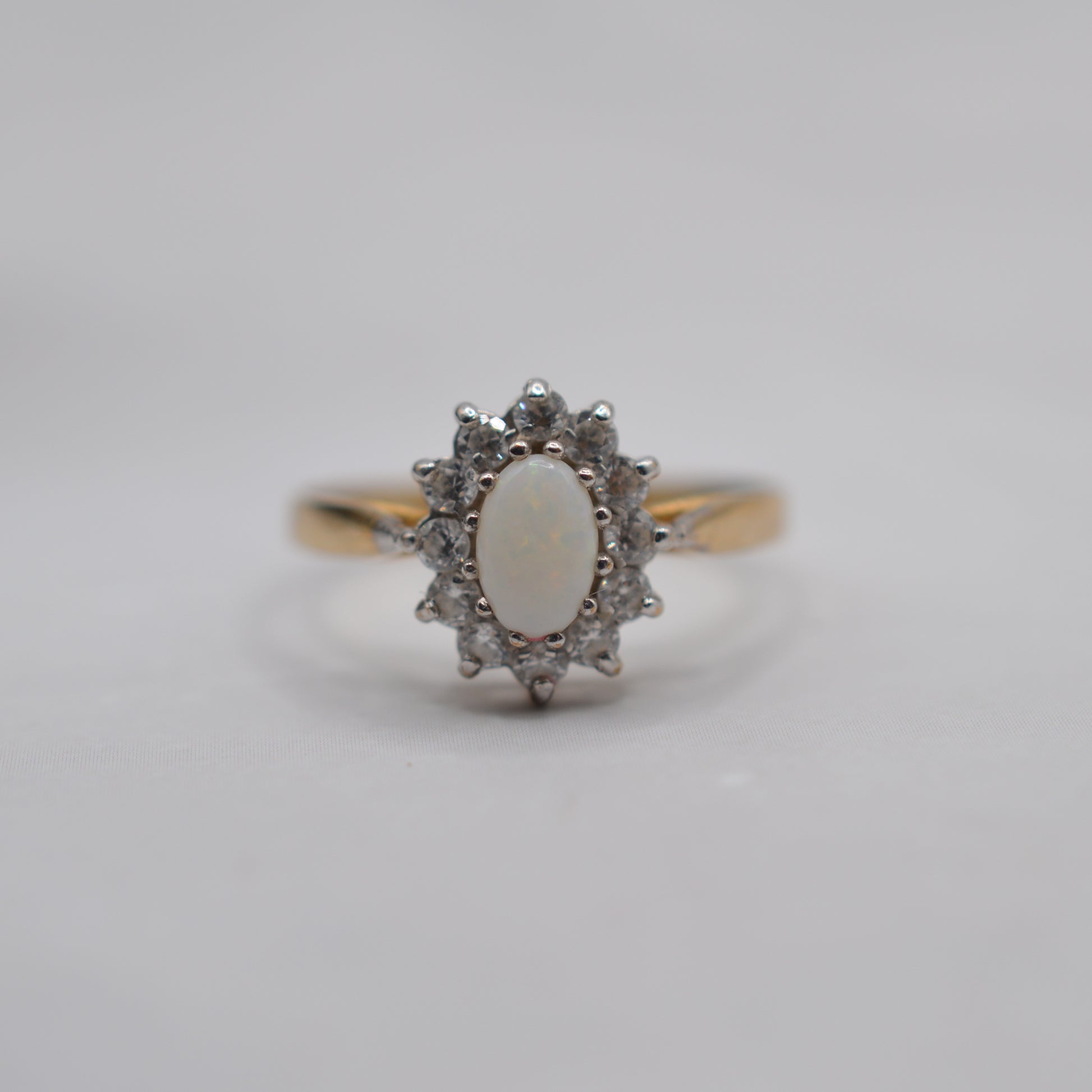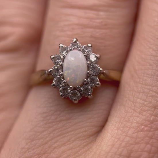 Vintage 9ct Gold Opal & CZ Cluster Ring