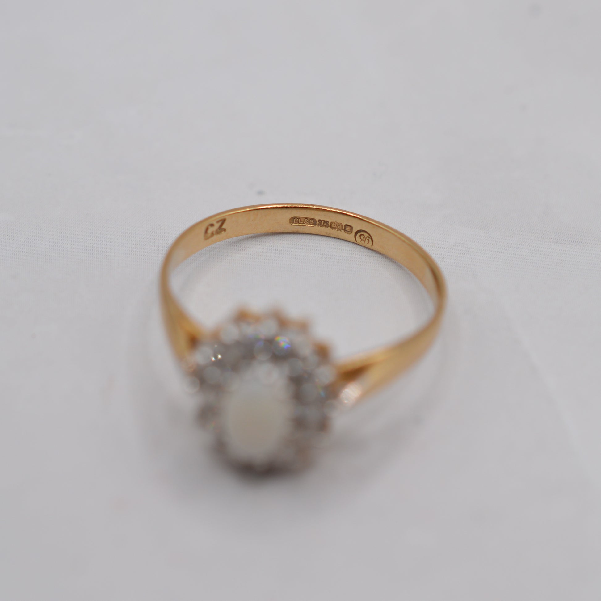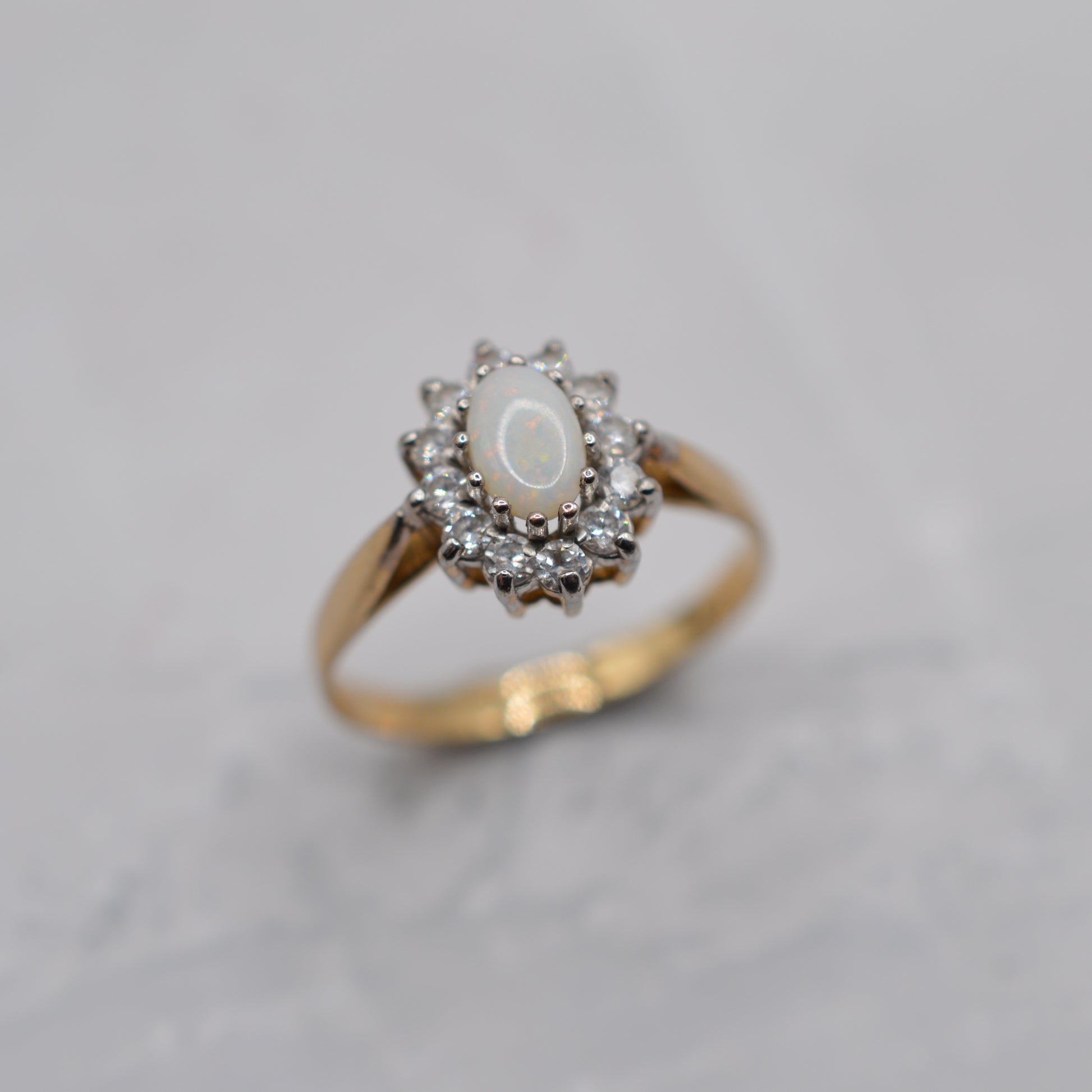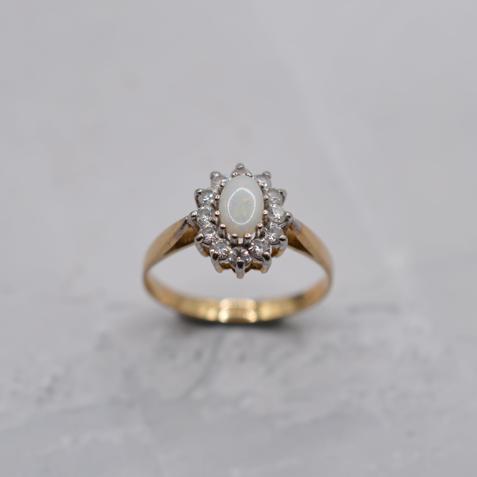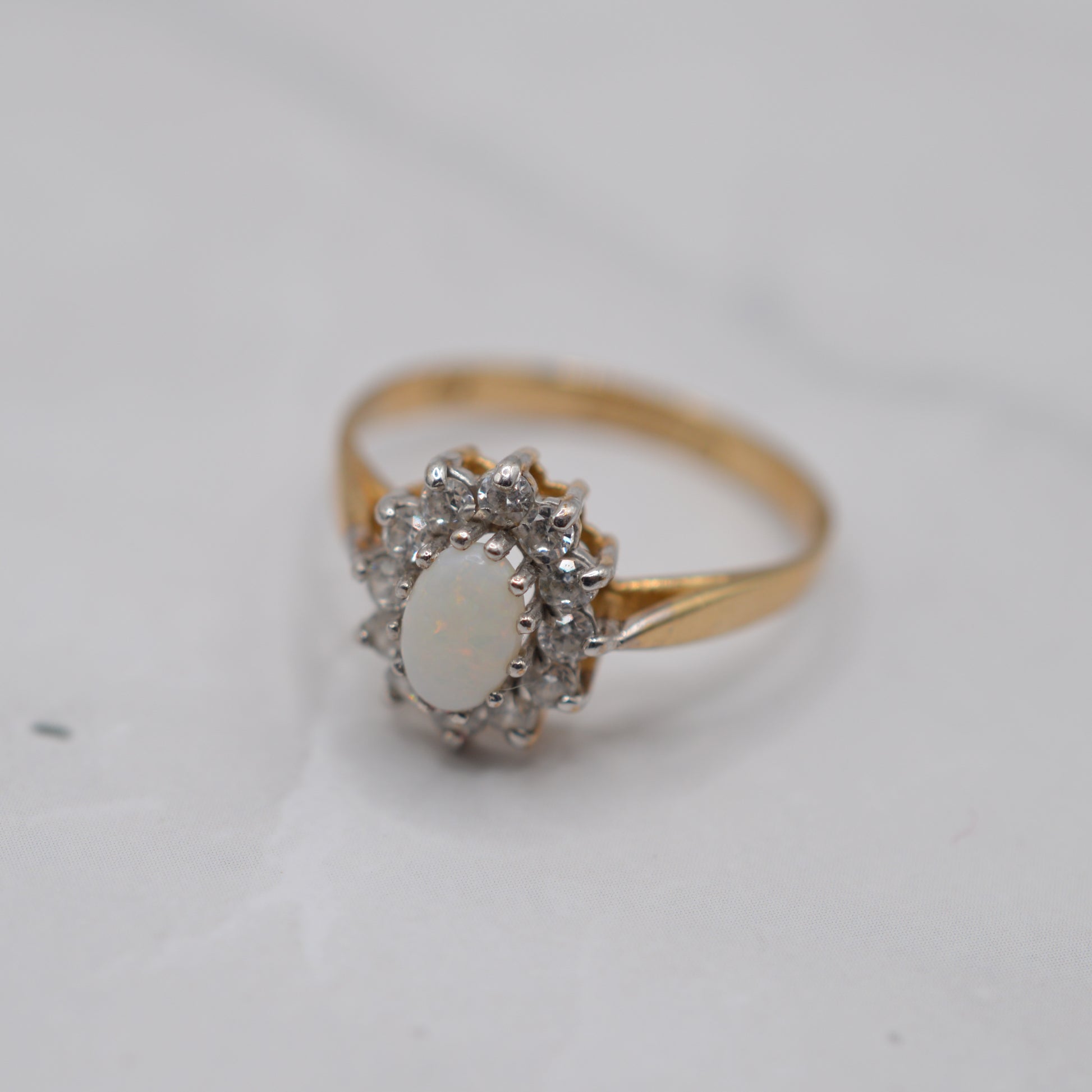 Vintage 9ct Gold Opal & CZ Cluster Ring