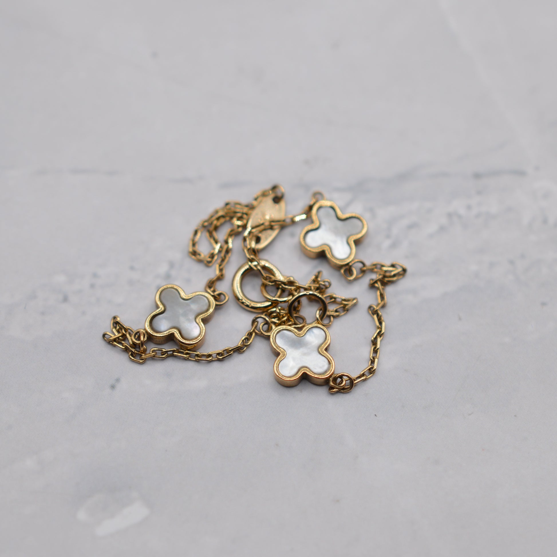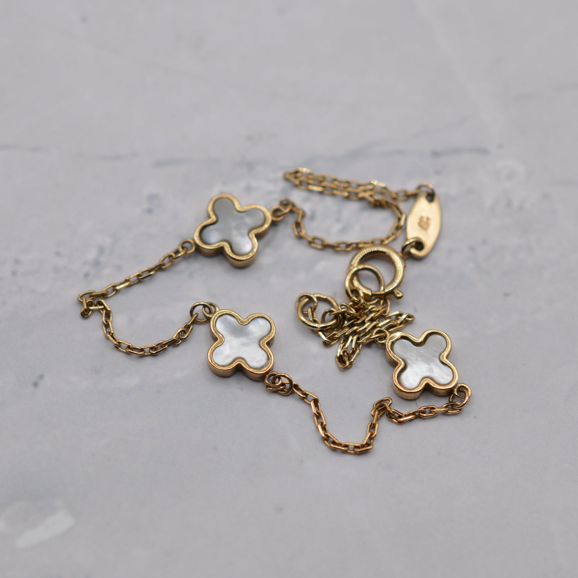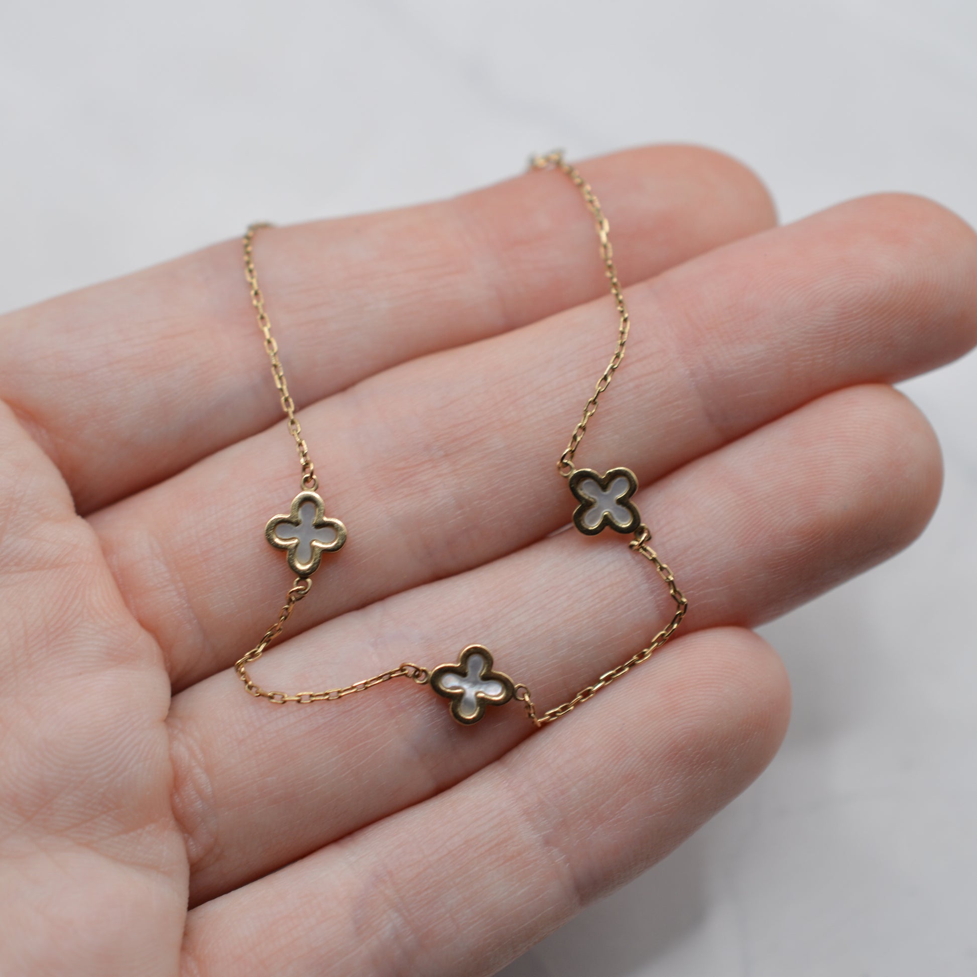 9ct Gold Mother-of-Pearl Clover Bracelet (7")