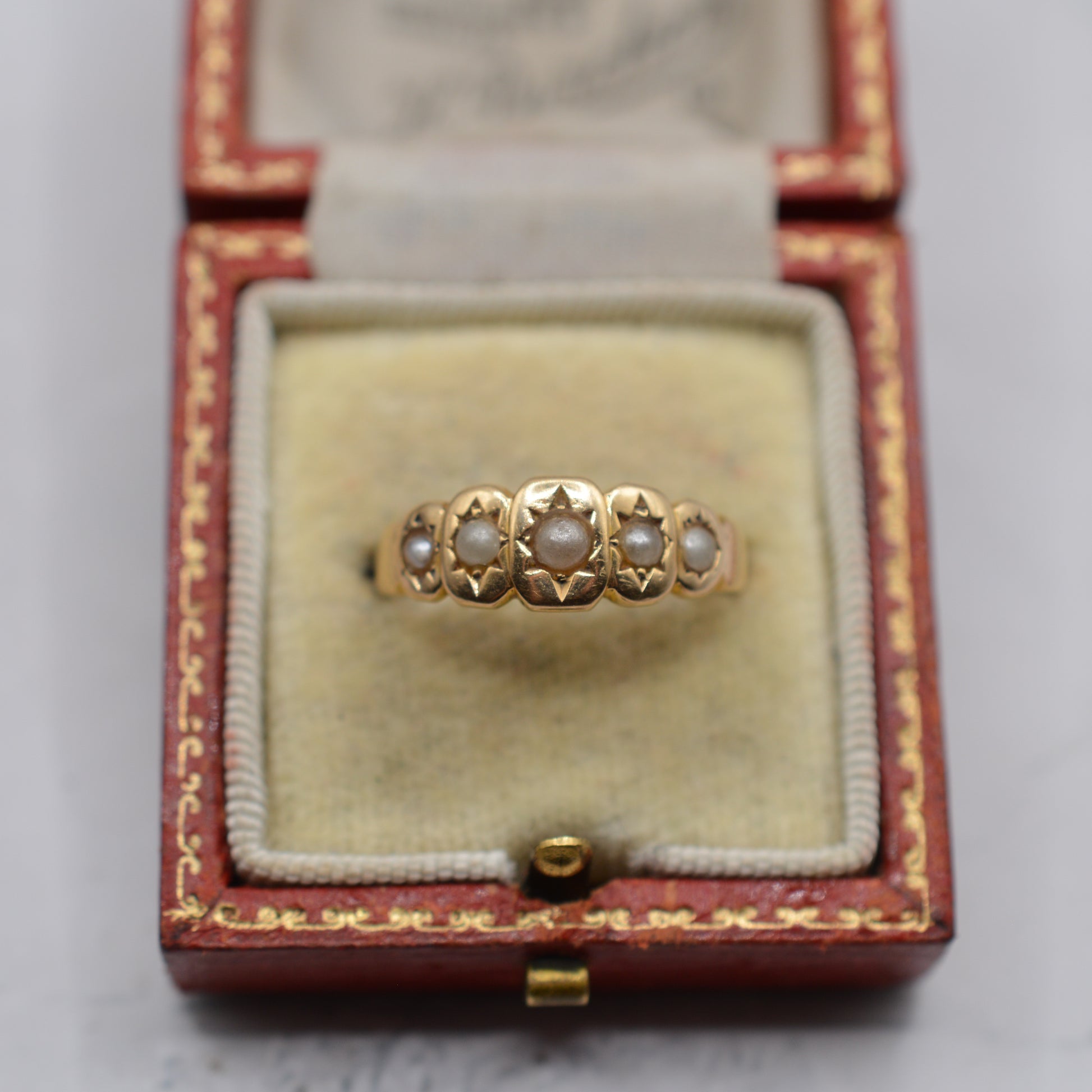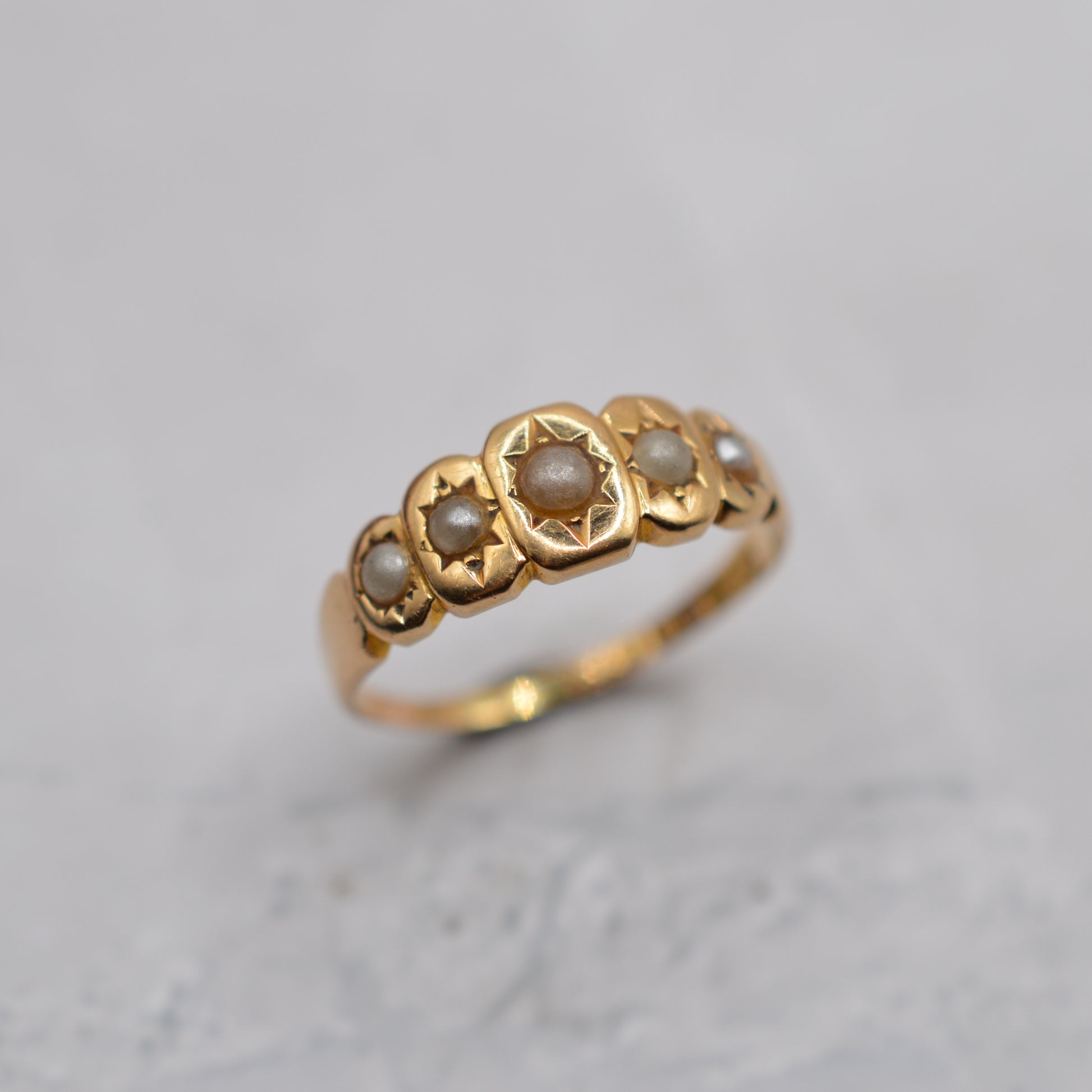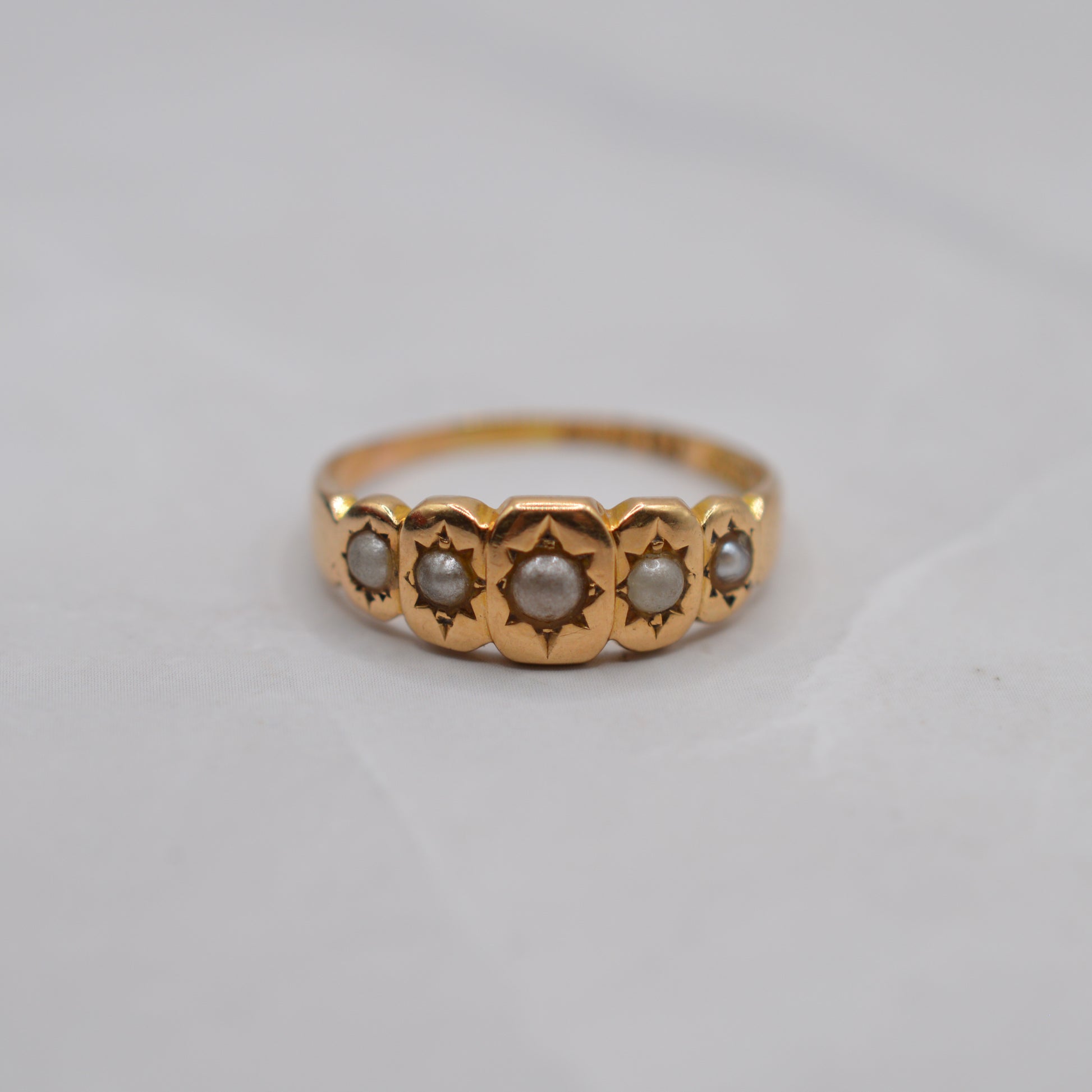 Antique Victorian 15ct Gold Pearl Five-Stone Ring