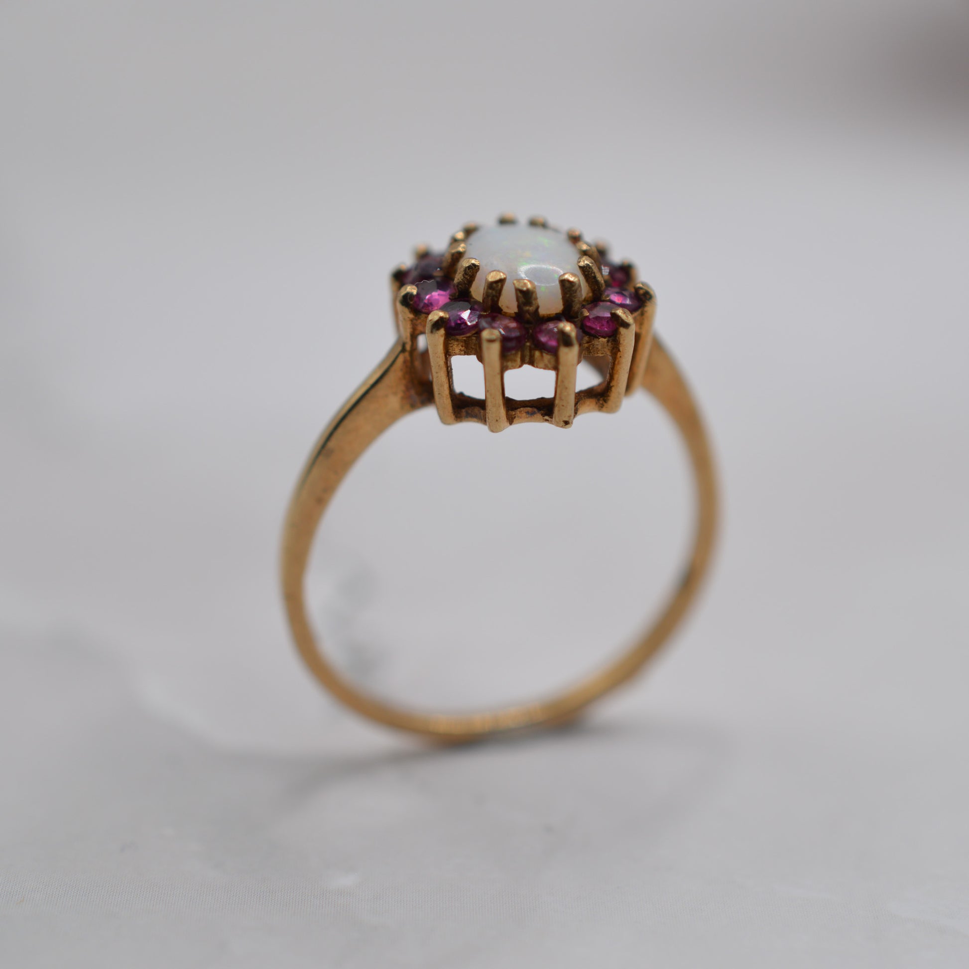 1970s Vintage 9ct Gold Opal & Ruby Cluster Ring
