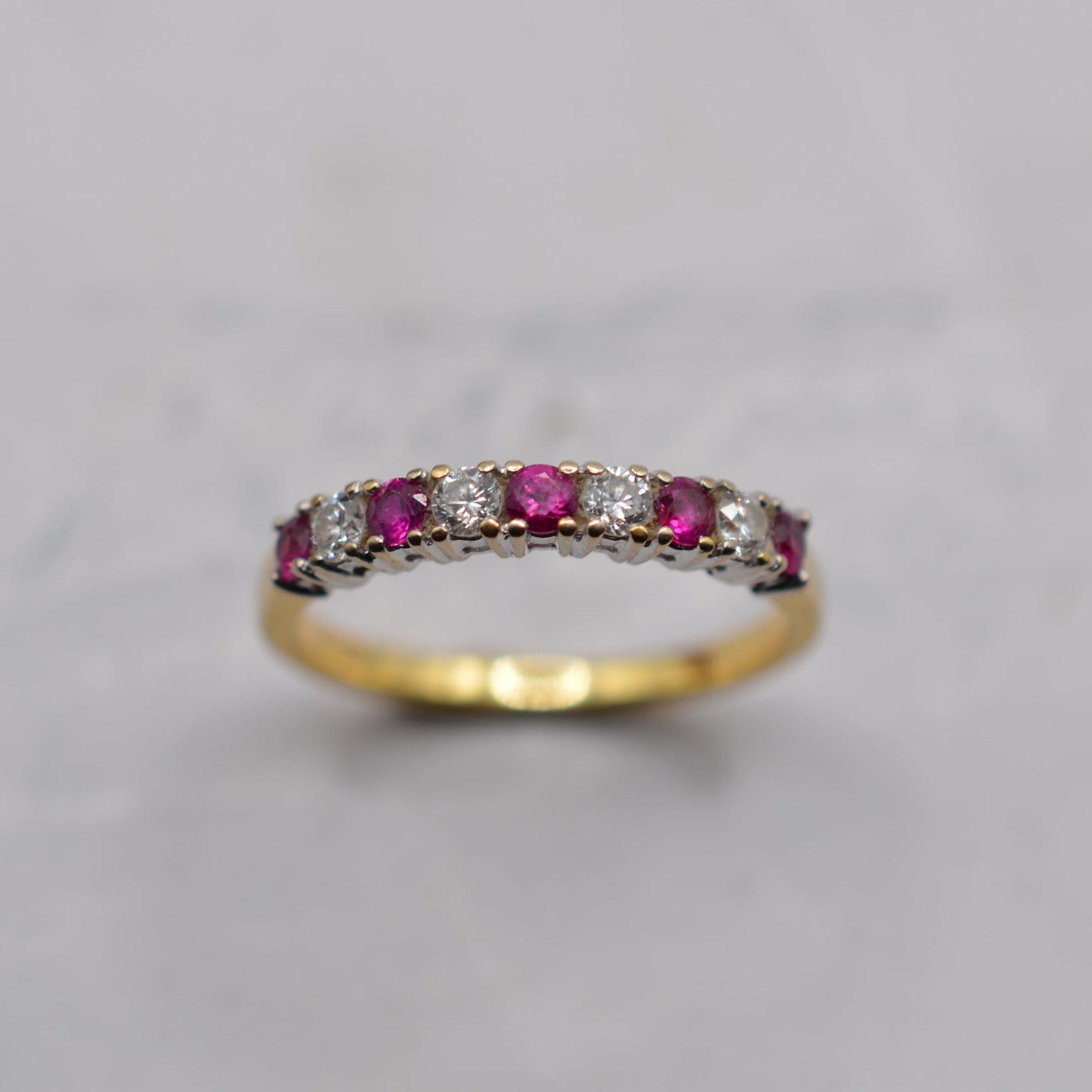 18ct Gold Ruby & Diamond Half-Eternity Ring