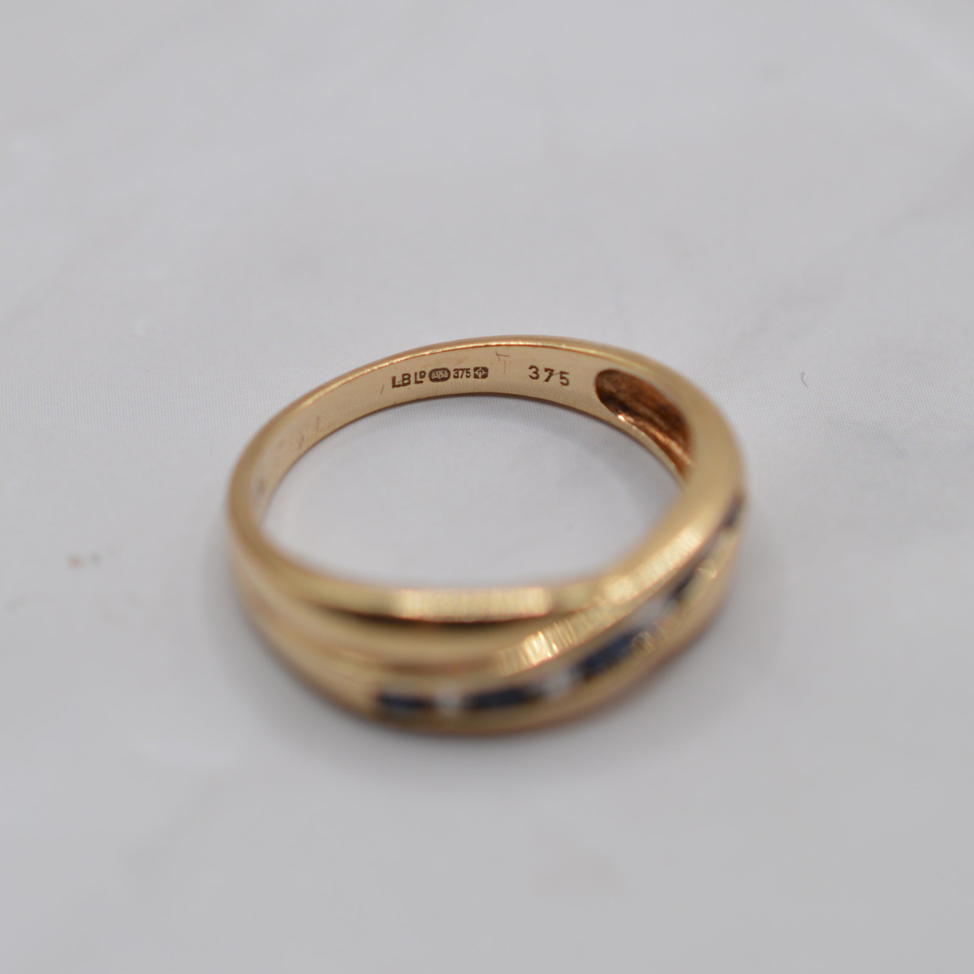 Vintage 9ct Gold Sapphire & C/Z Crossover Ring