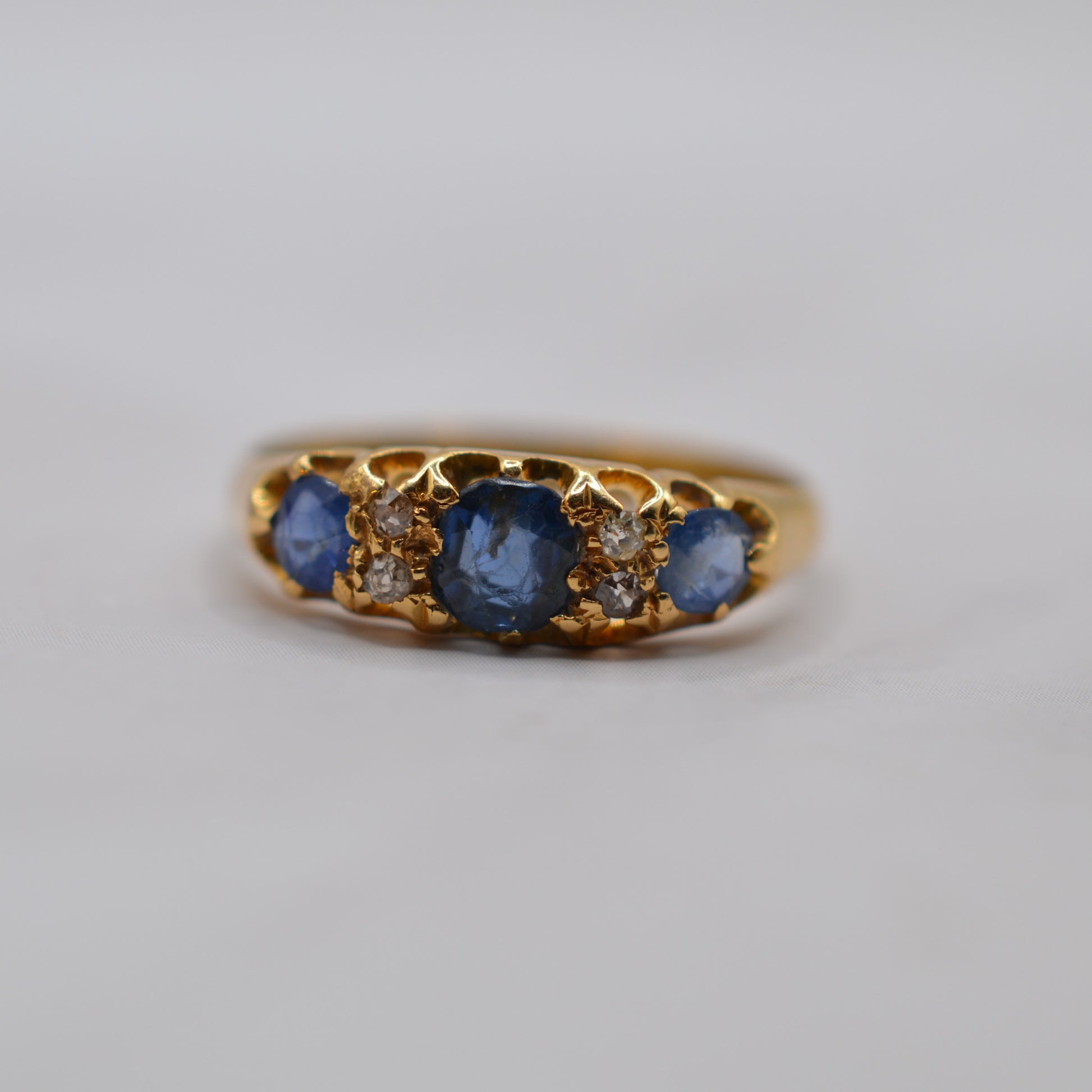 Antique Edwardian 18ct Gold Sapphire & Diamond Ring