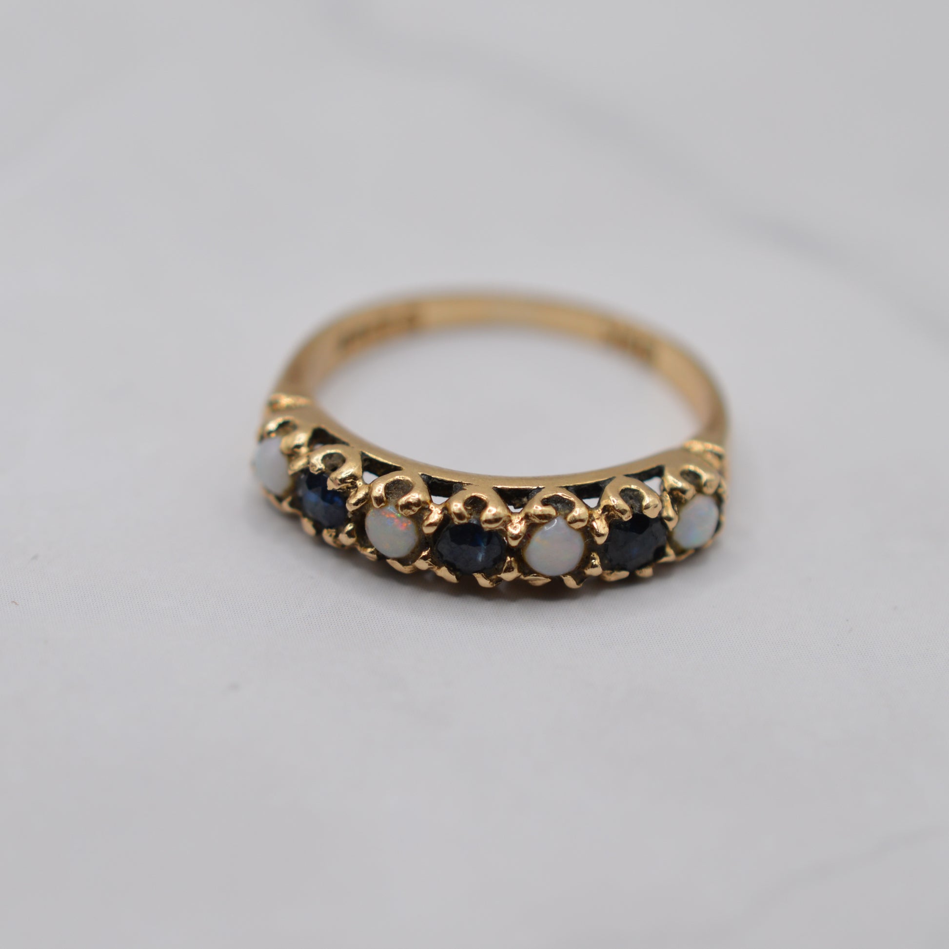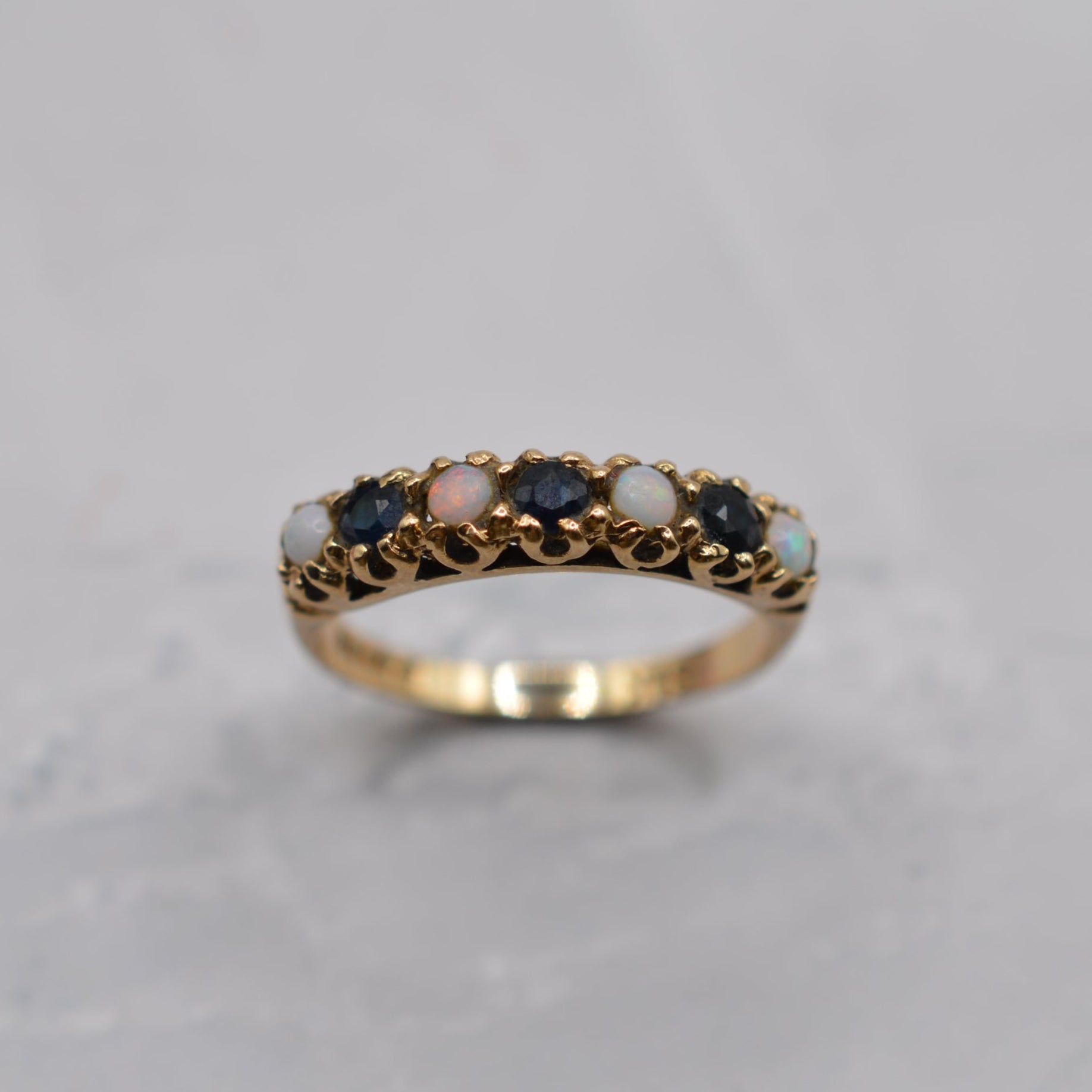 1970s Vintage 9ct Gold Sapphire & Opal Half-Eternity Ring