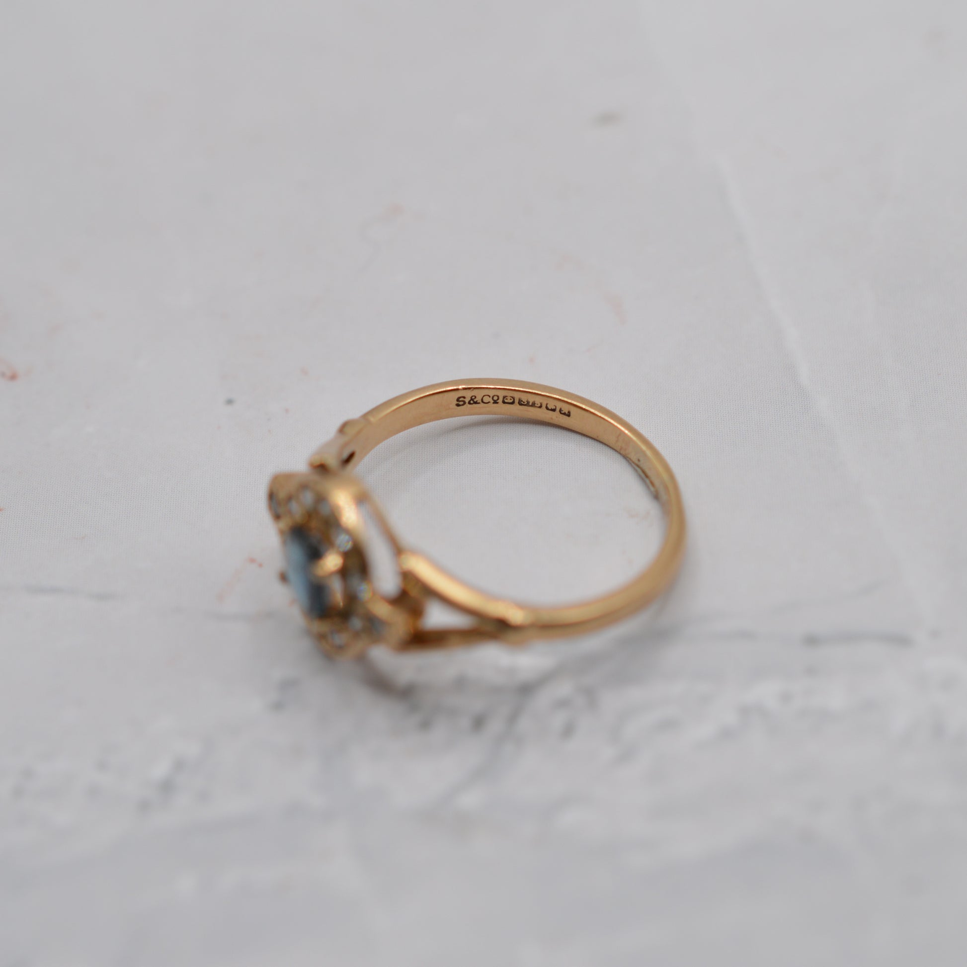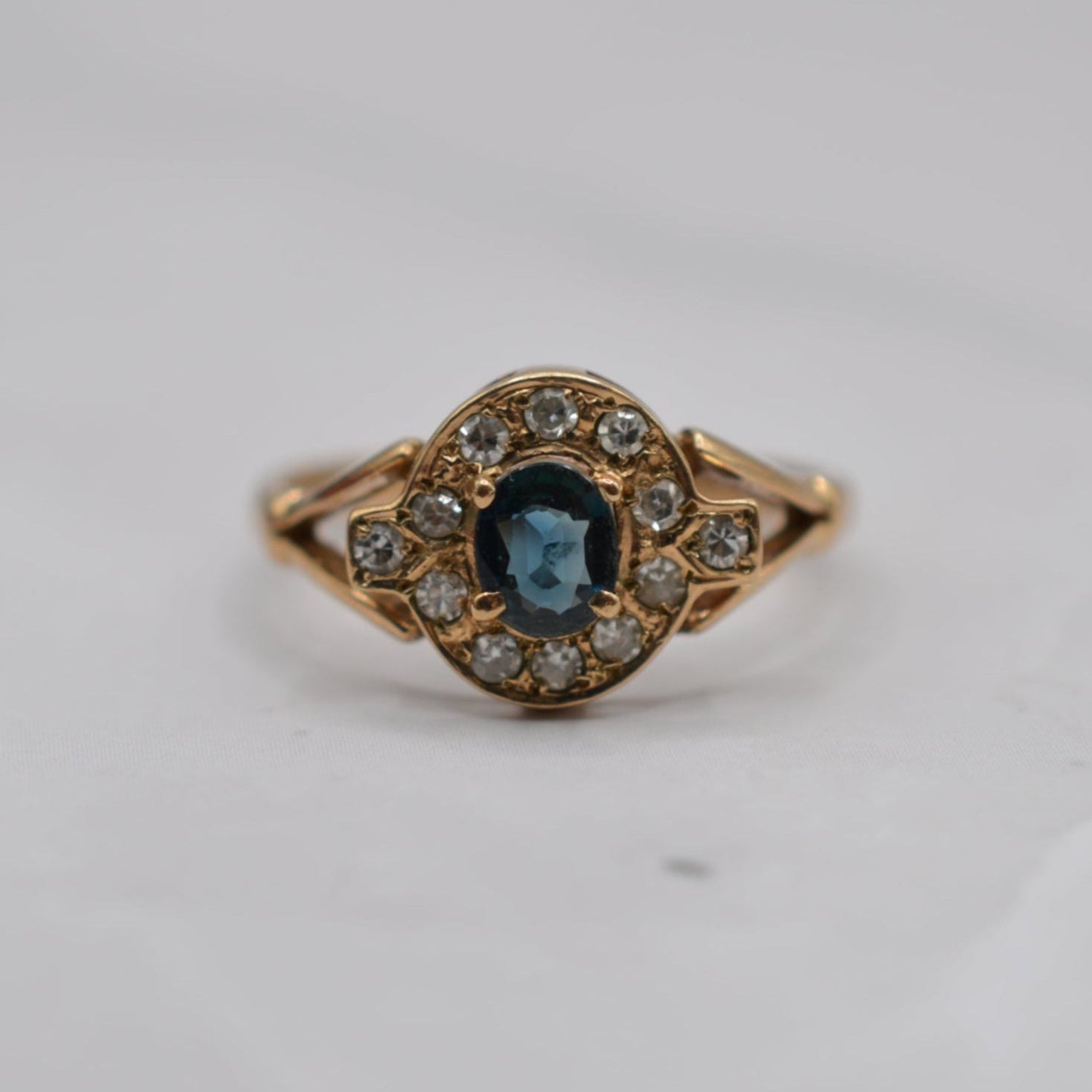 1970s Vintage 9ct Gold Sapphire & Diamond Cluster Ring