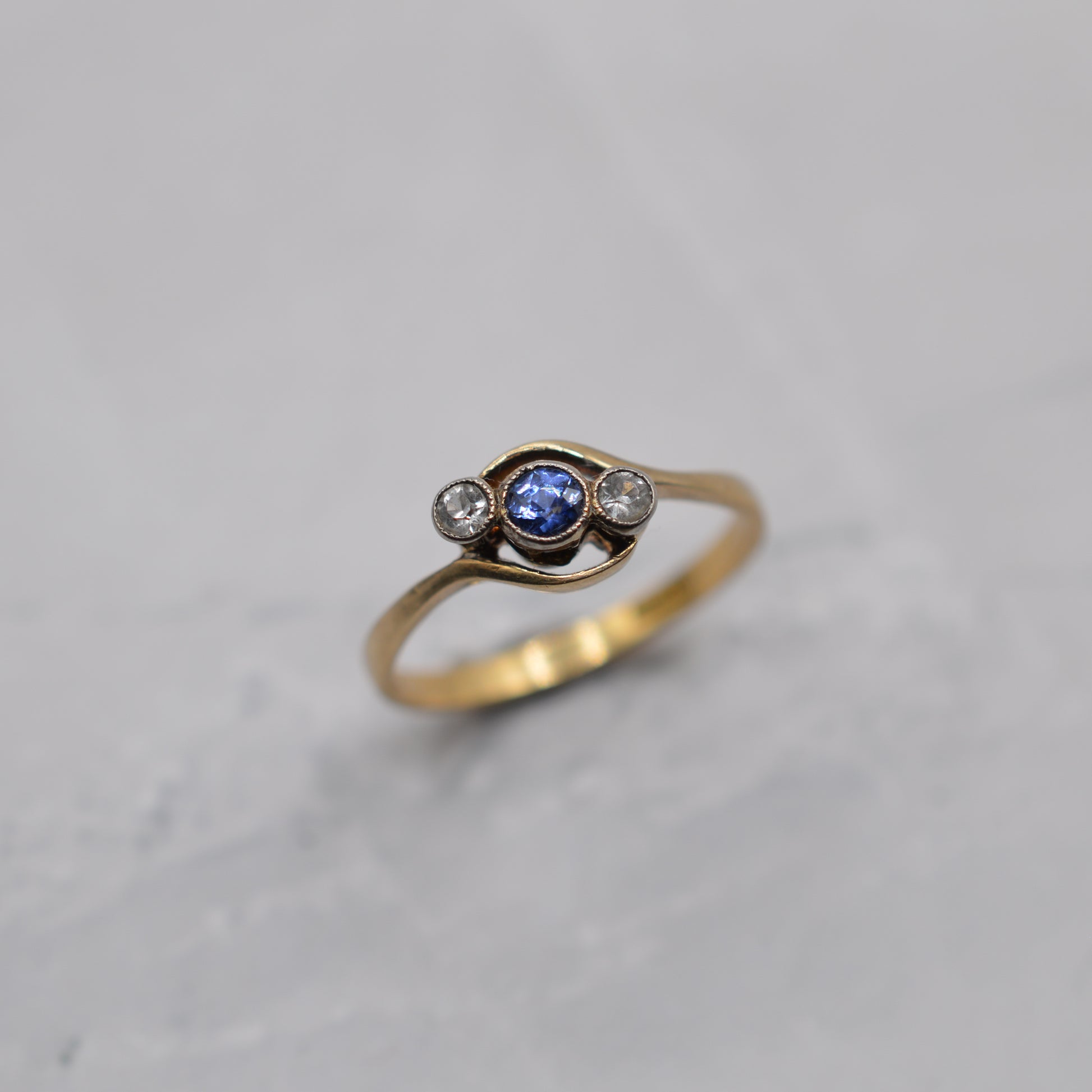 Antique 18ct Gold Sapphire Trilogy Bypass Ring