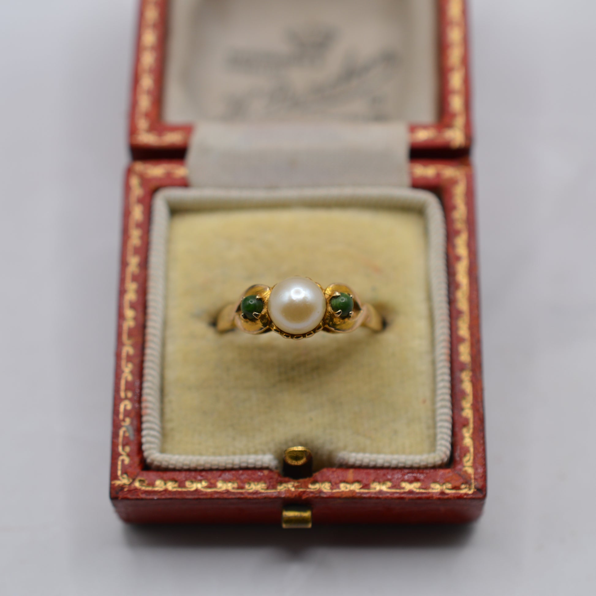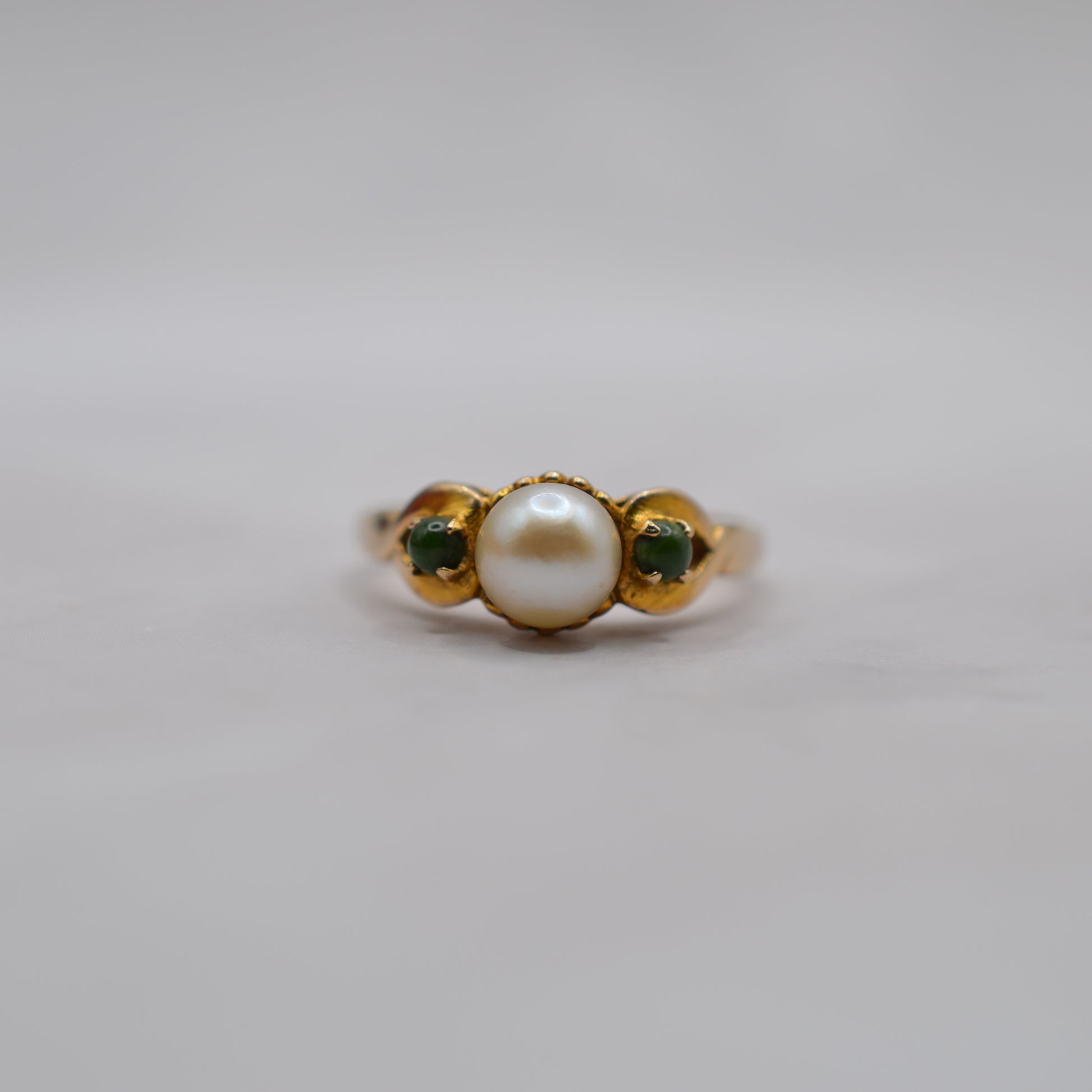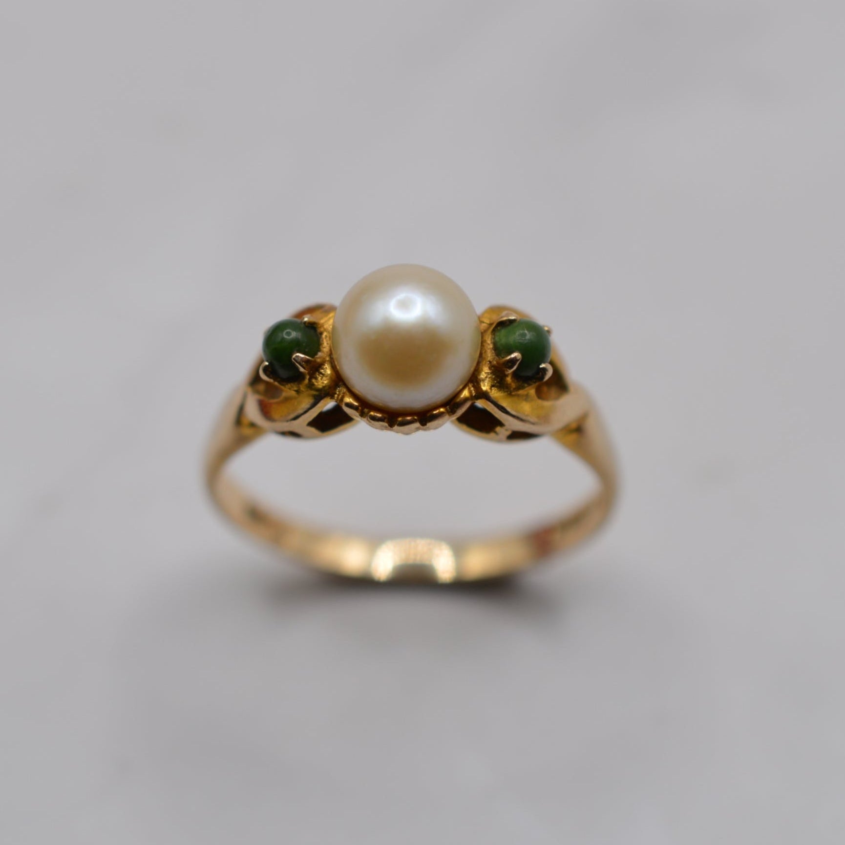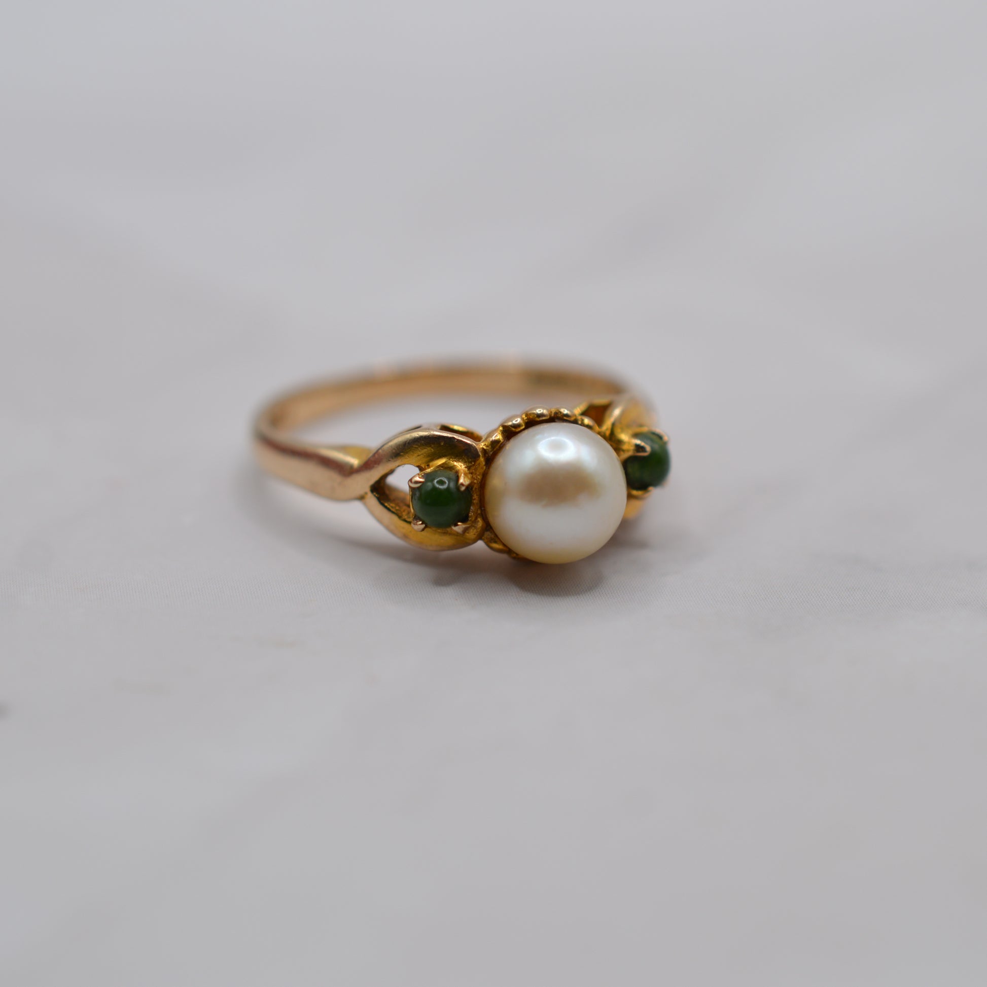 1960s Vintage 9ct Gold Pearl & Jade Trilogy Ring