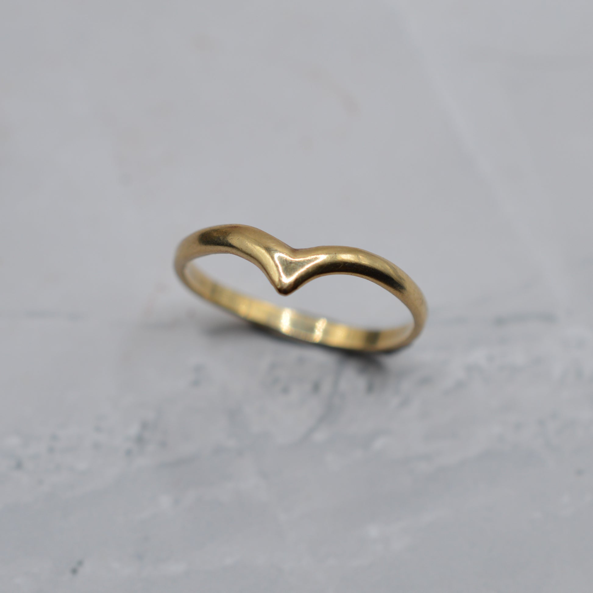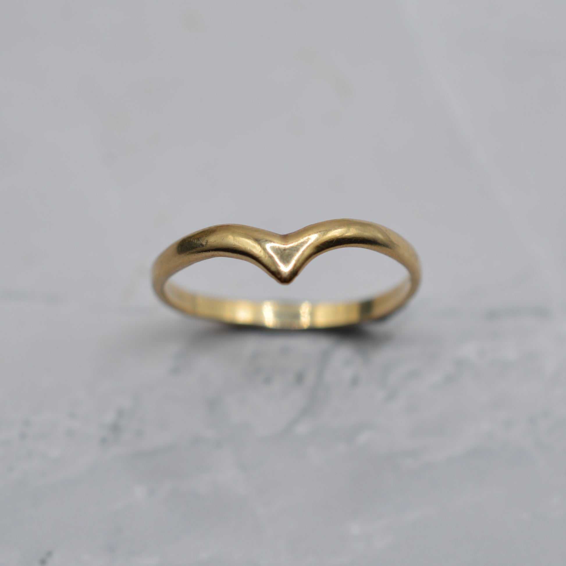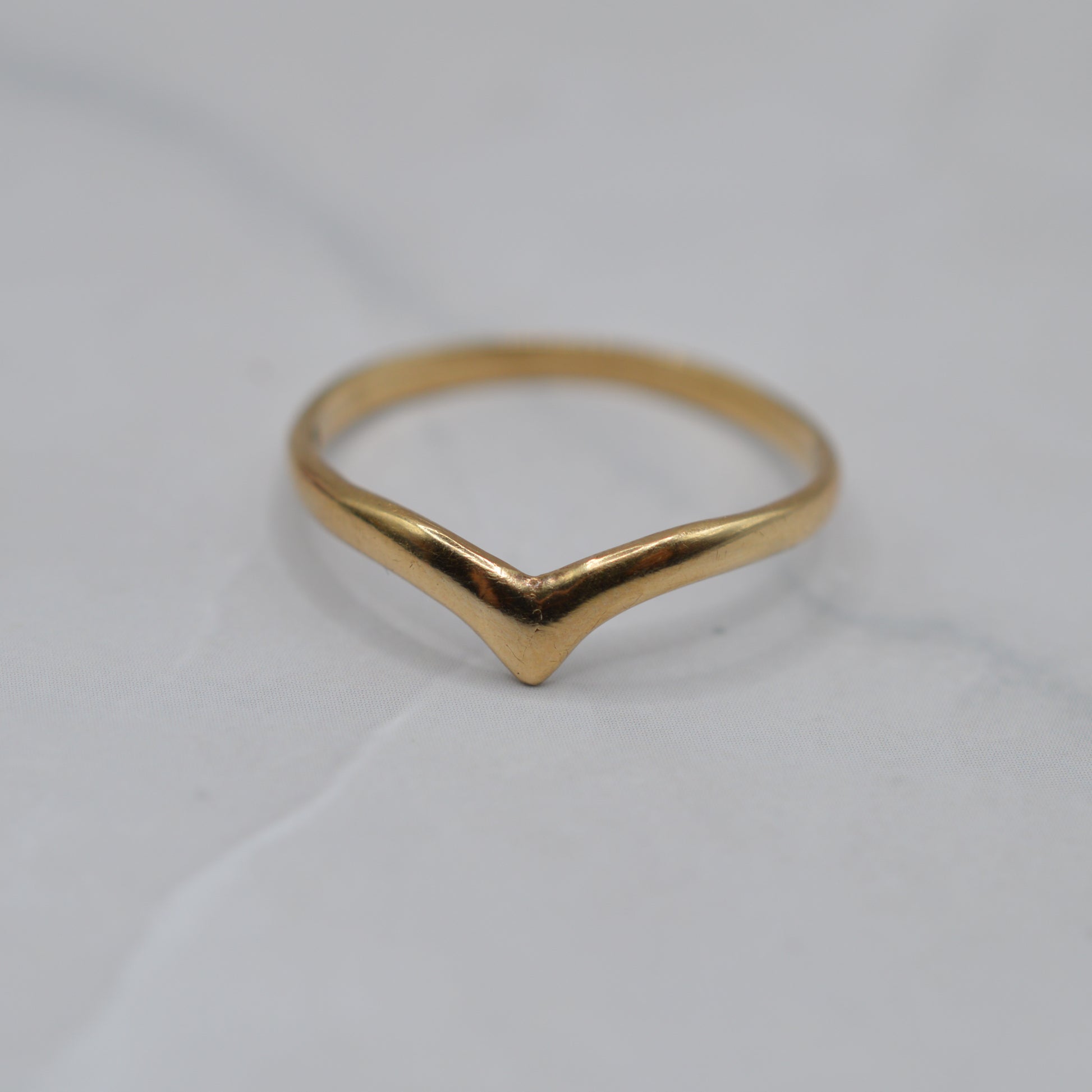 A wonderful 9ct gold wishbone ring. This classic piece features a plain yellow gold band in the shape of a wishbone (or chevron), making it perfect for wearing alone as a minimalist piece or as part of a stacked ring set.